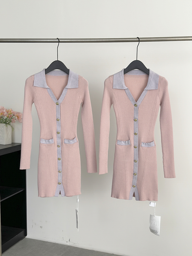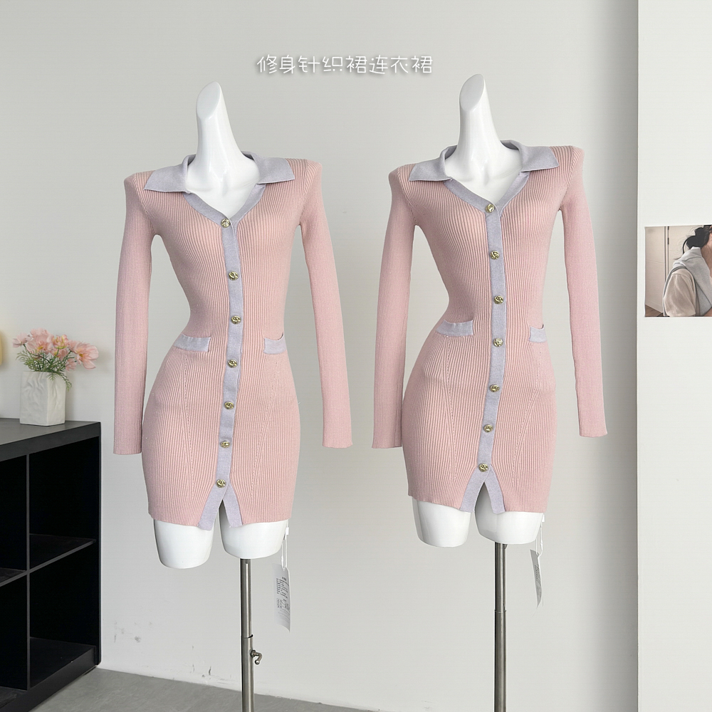 FA48924# 粉雾星河醋酸山羊绒修身针织裙连衣裙 服裝批發女裝批發服飾貨源