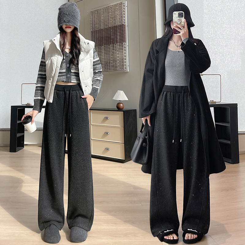 FA48928# 双色羊绒加绒亮片弯刀阔腿裤女冬款螺纹高腰百搭休闲香蕉裤 服裝批發女裝批發服飾貨源
