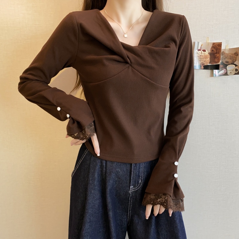 FA48932# 大码长袖加厚保暖T恤时尚减龄显瘦小众别致遮肉收腰打底衫女 服裝批發女裝批發服飾貨源