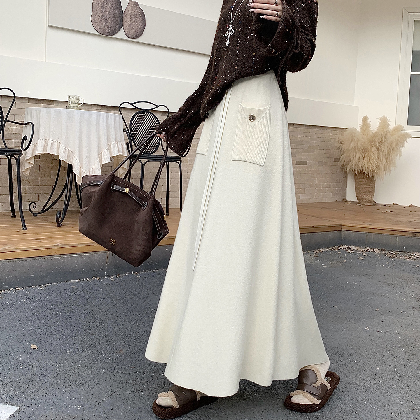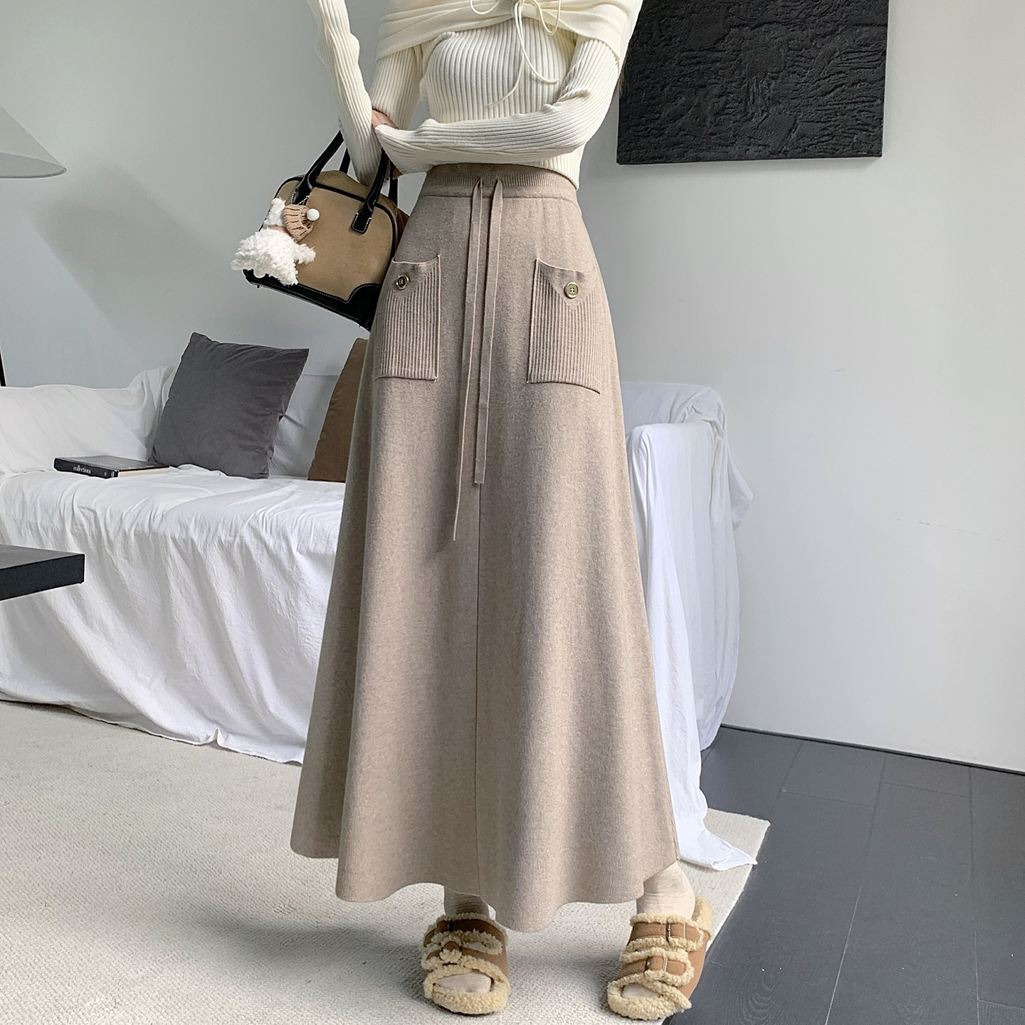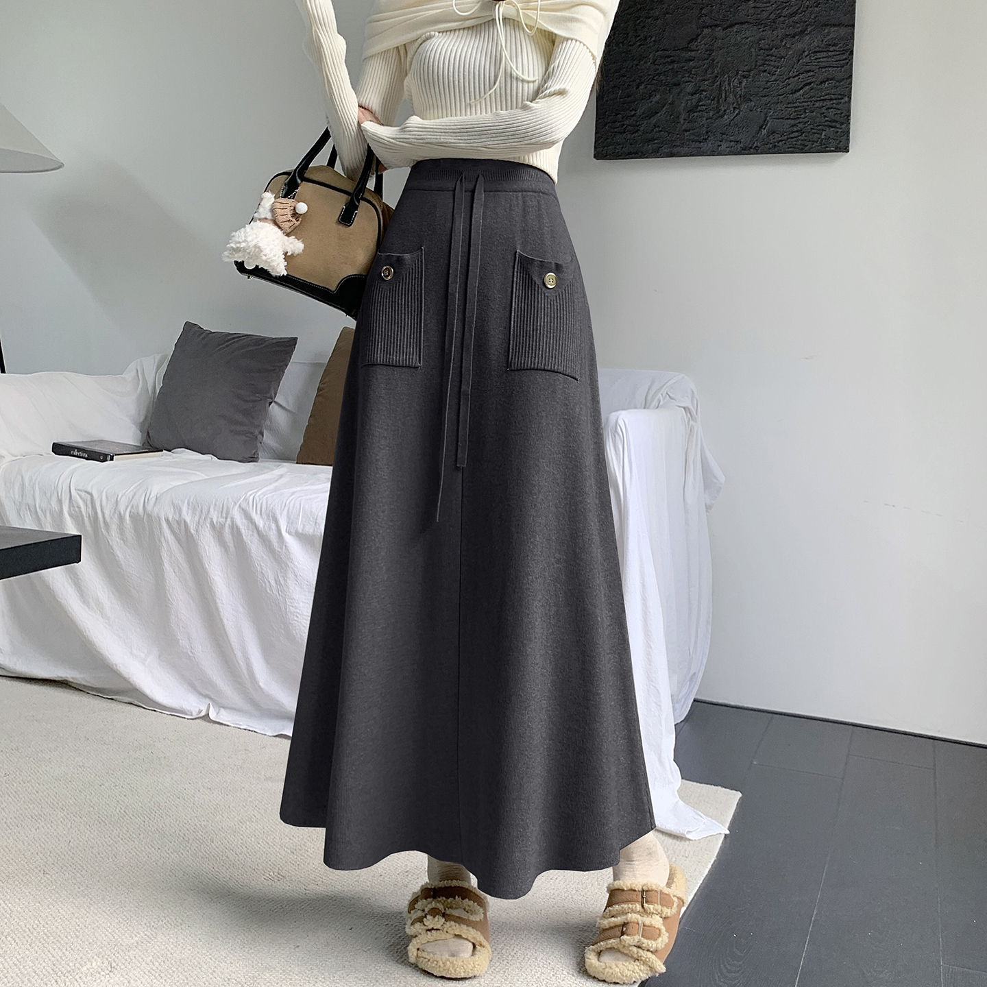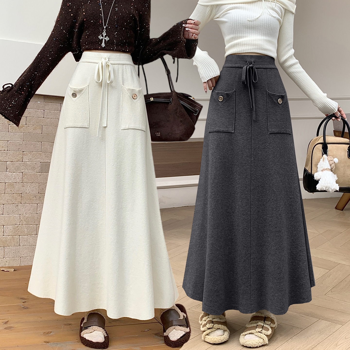 FA48942# 加厚秋冬针织半身裙女新款韩版高腰a字大摆长裙遮胯百褶 服裝批發女裝批發服飾貨源