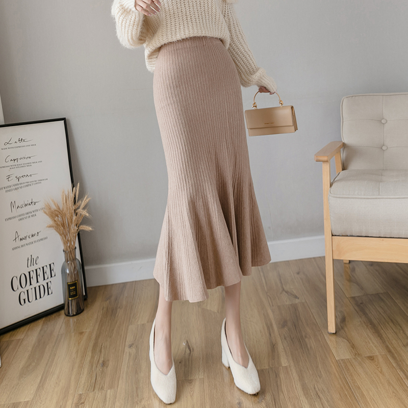 FA48943# 秋冬高腰修身针织鱼尾包臀荷叶边半身裙韩国高腰修身长裙 服裝批發女裝批發服飾貨源