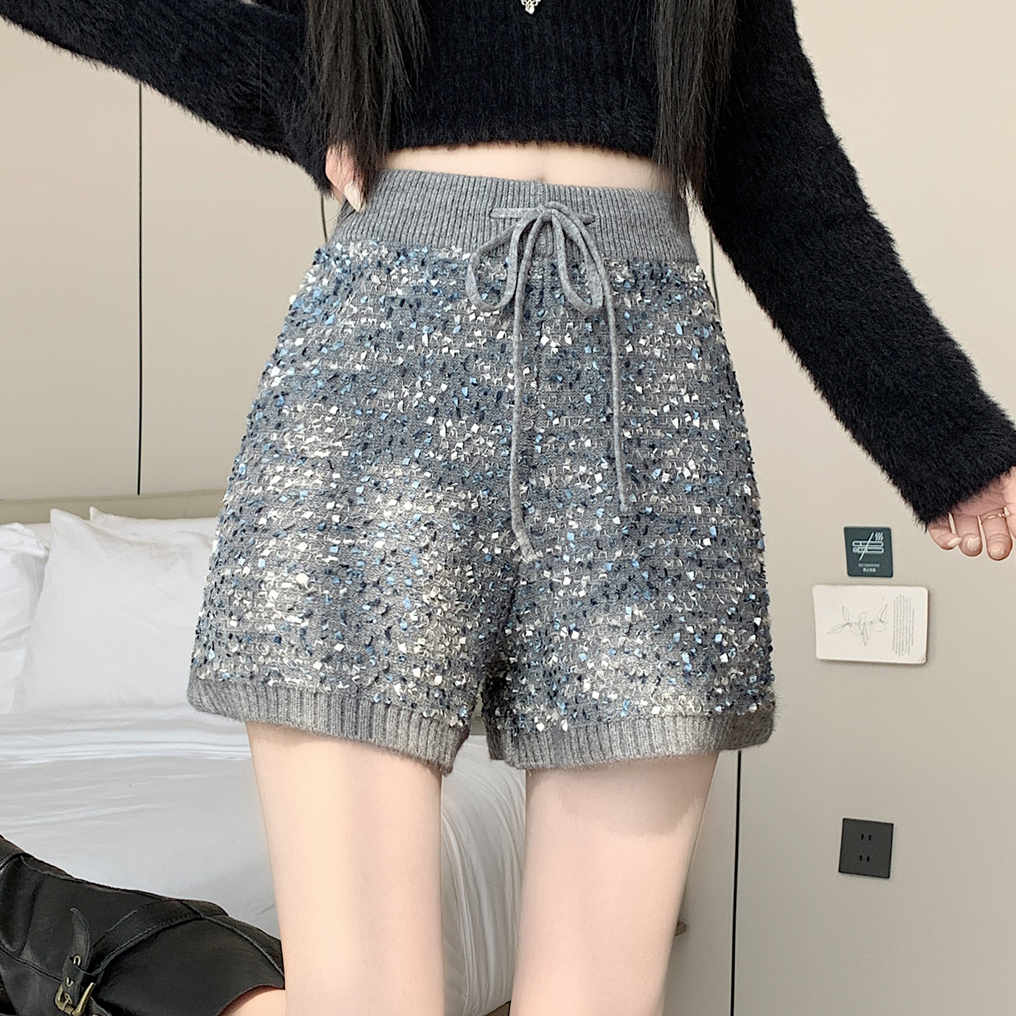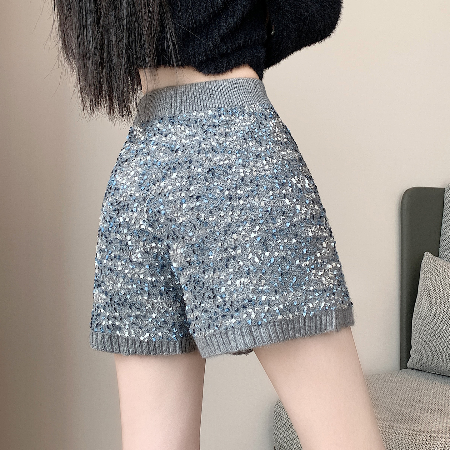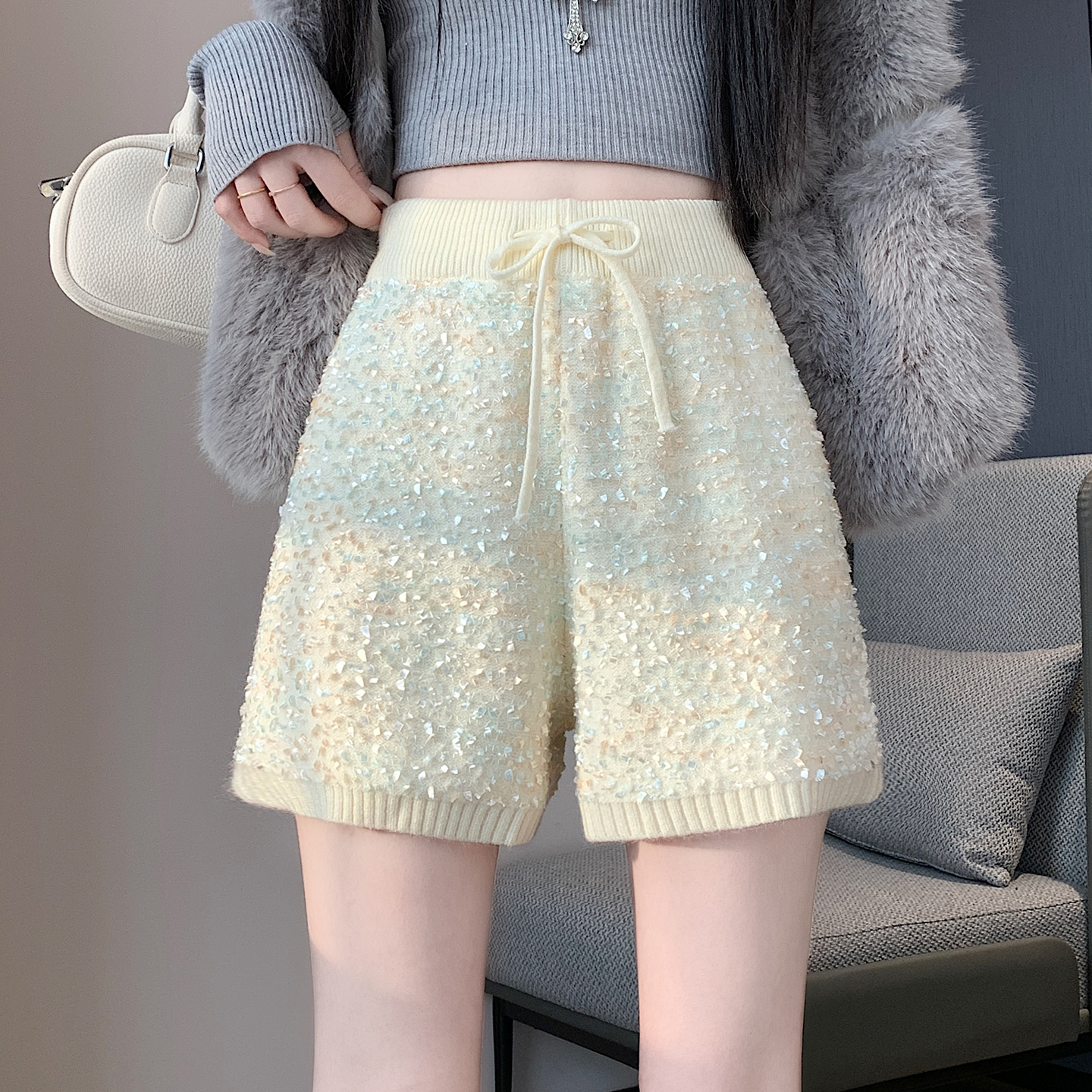 FA48945# 拉夏亮丝针织短裤女秋冬外穿裤子新款高腰a字阔腿休闲裤 服裝批發女裝批發服飾貨源