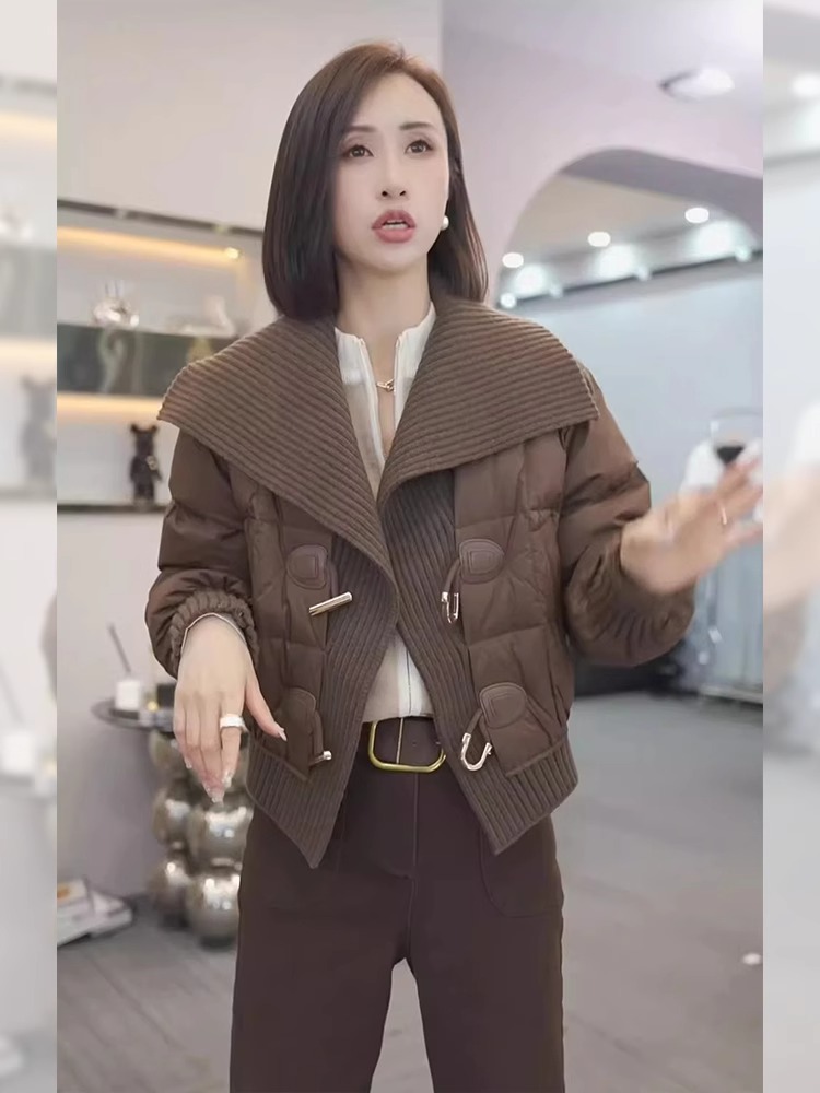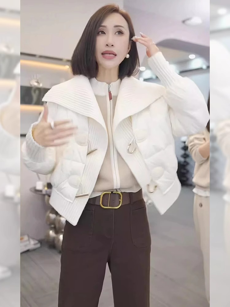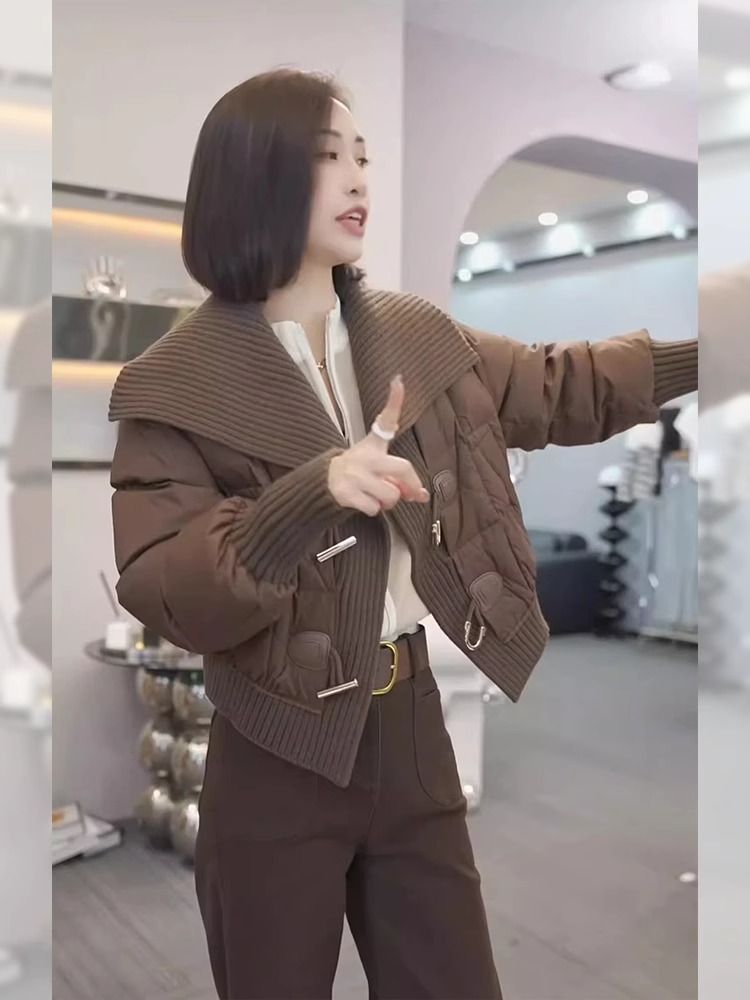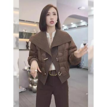FA48987# 针织假两件羽绒棉服女冬季大码胖mm海军领短款棉衣设计感棉袄外套 服裝批發女裝批發服飾貨源