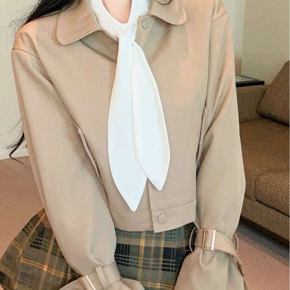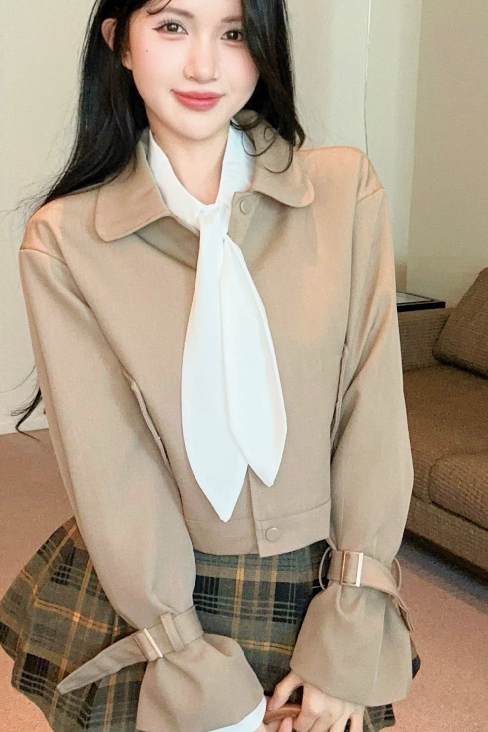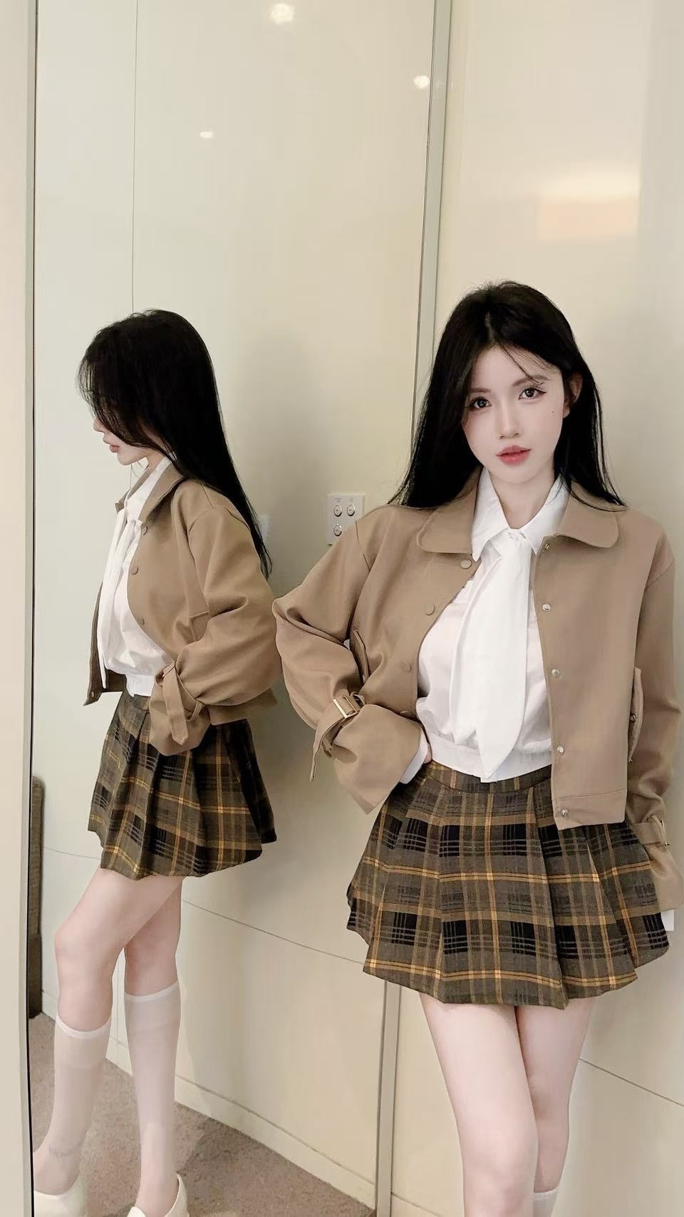 FA49097# 学院风JK制服套装短款夹克风衣外套衬衫百褶短裙三件套女 服裝批發女裝批發服飾貨源