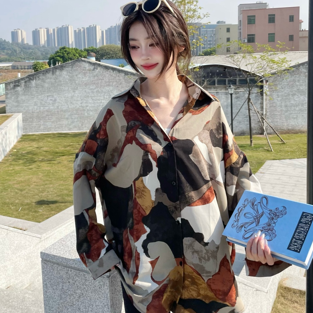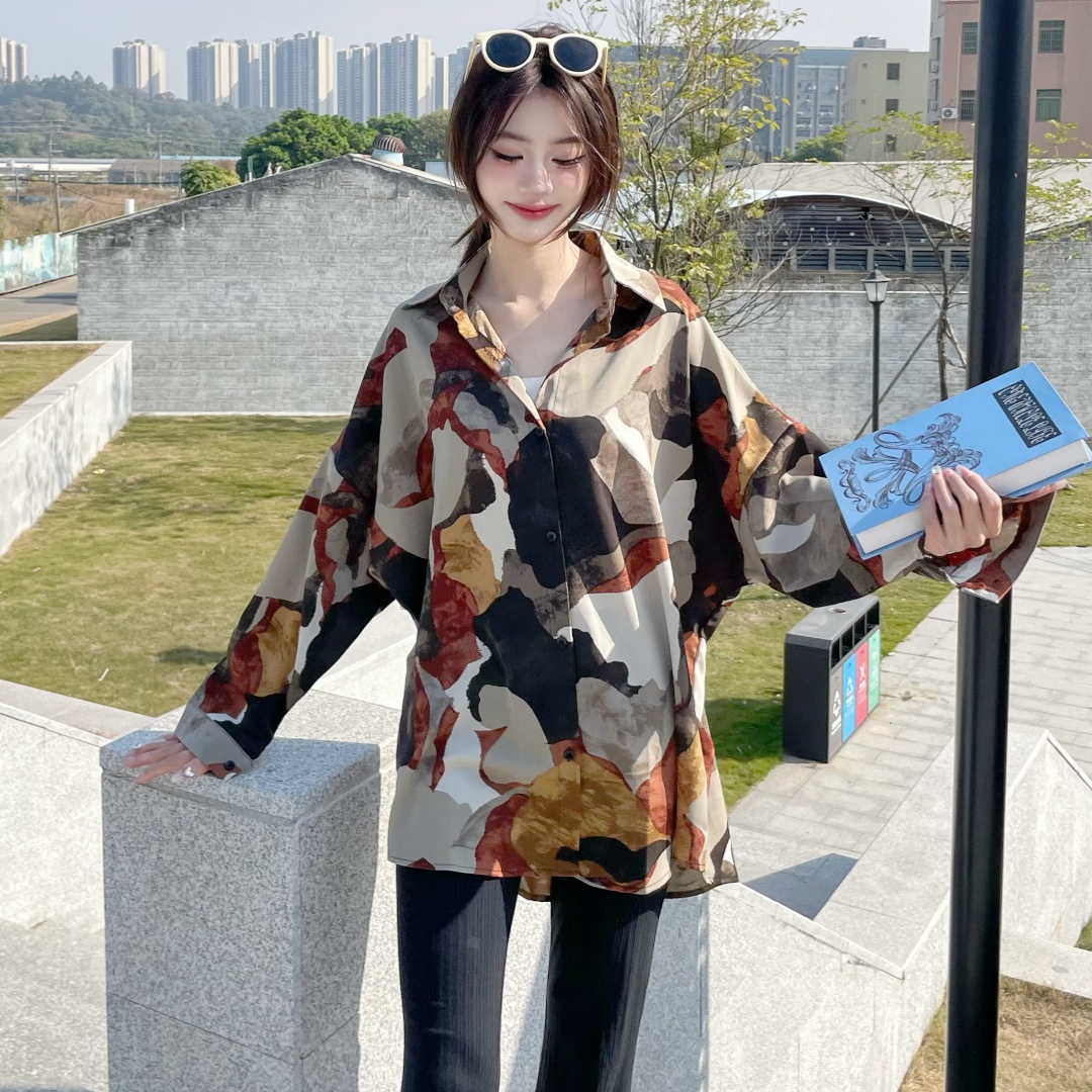 FA49196# 春秋新款韩版复古印花长袖衬衫宽松百搭衬衣外套 服裝批發女裝批發服飾貨源