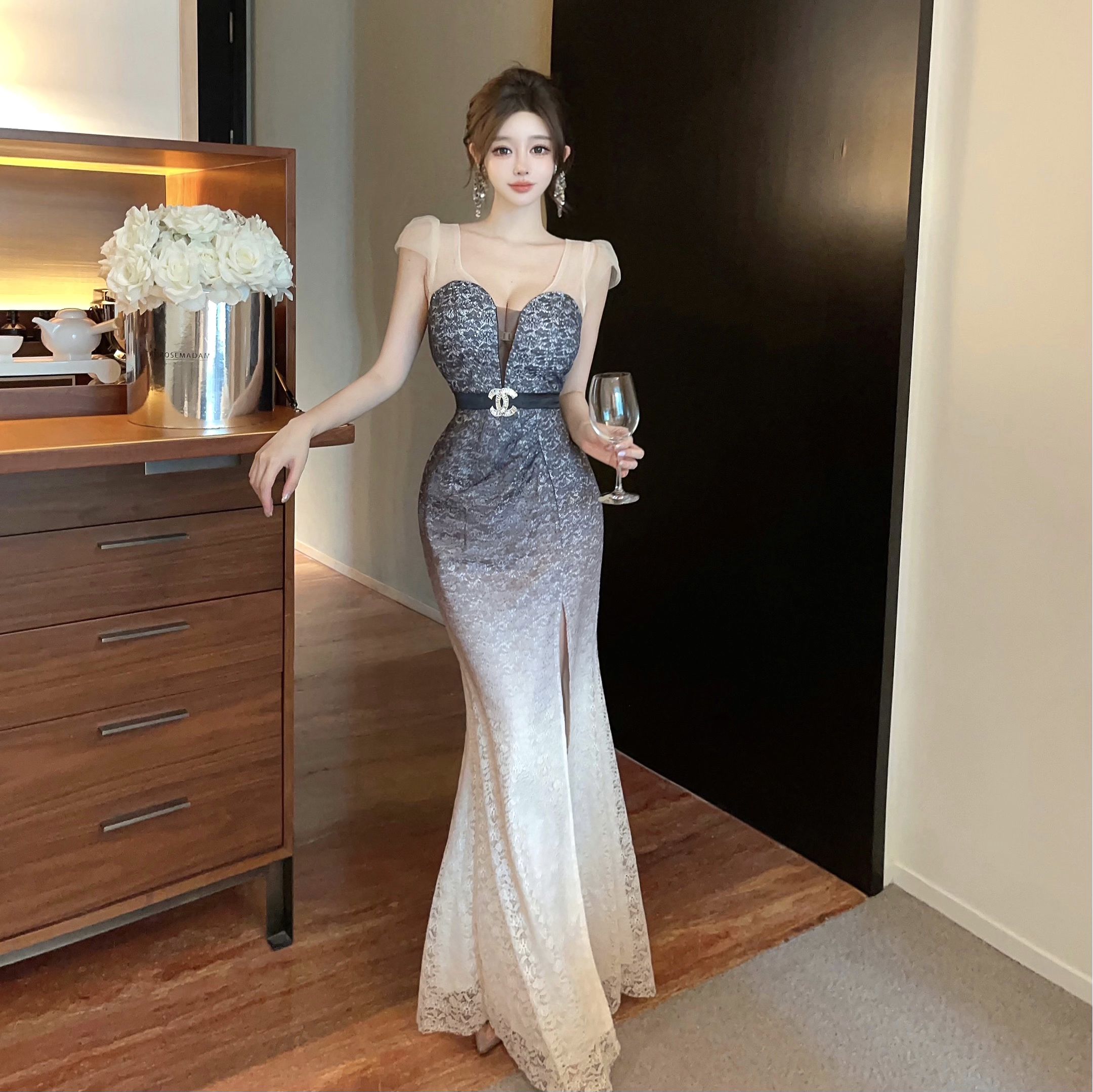 Home > 礼服、晚礼服 > 新款高端礼服性感高档气质修身长款遮肉渐变连衣裙