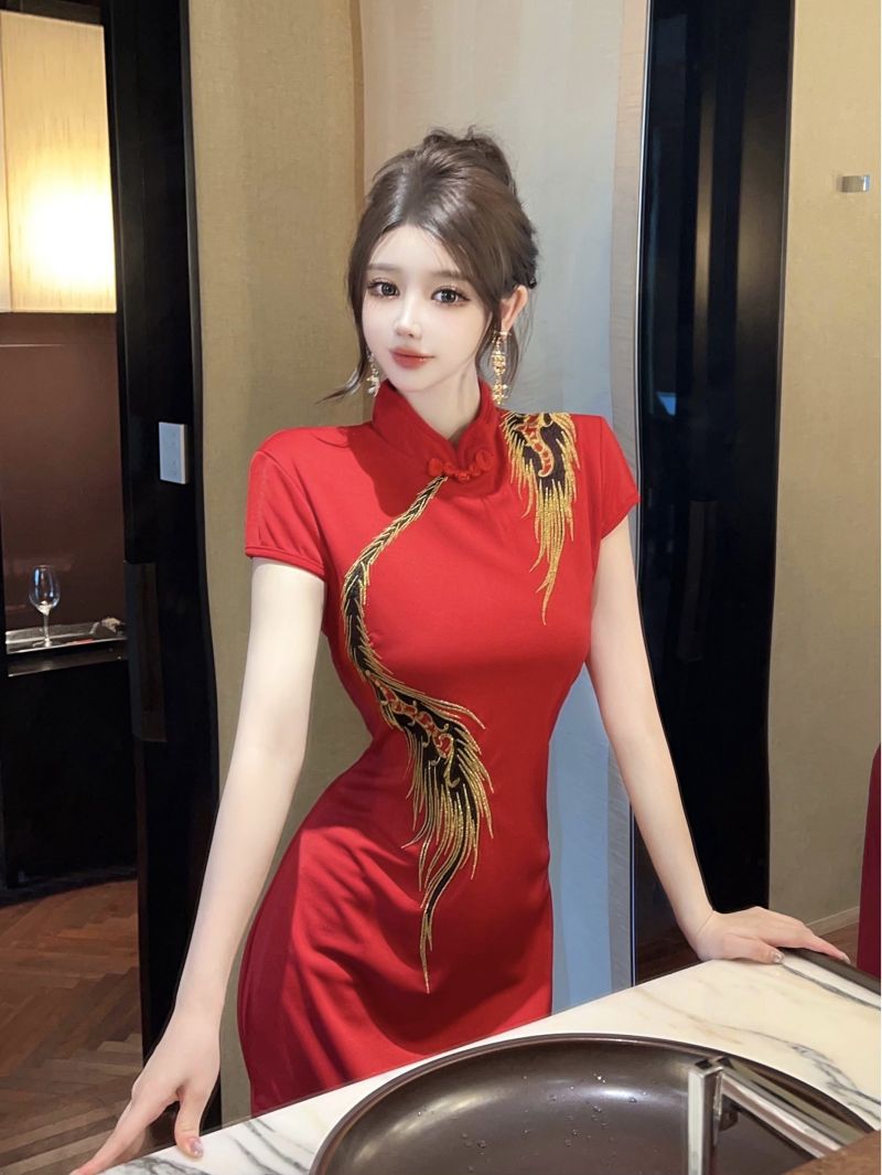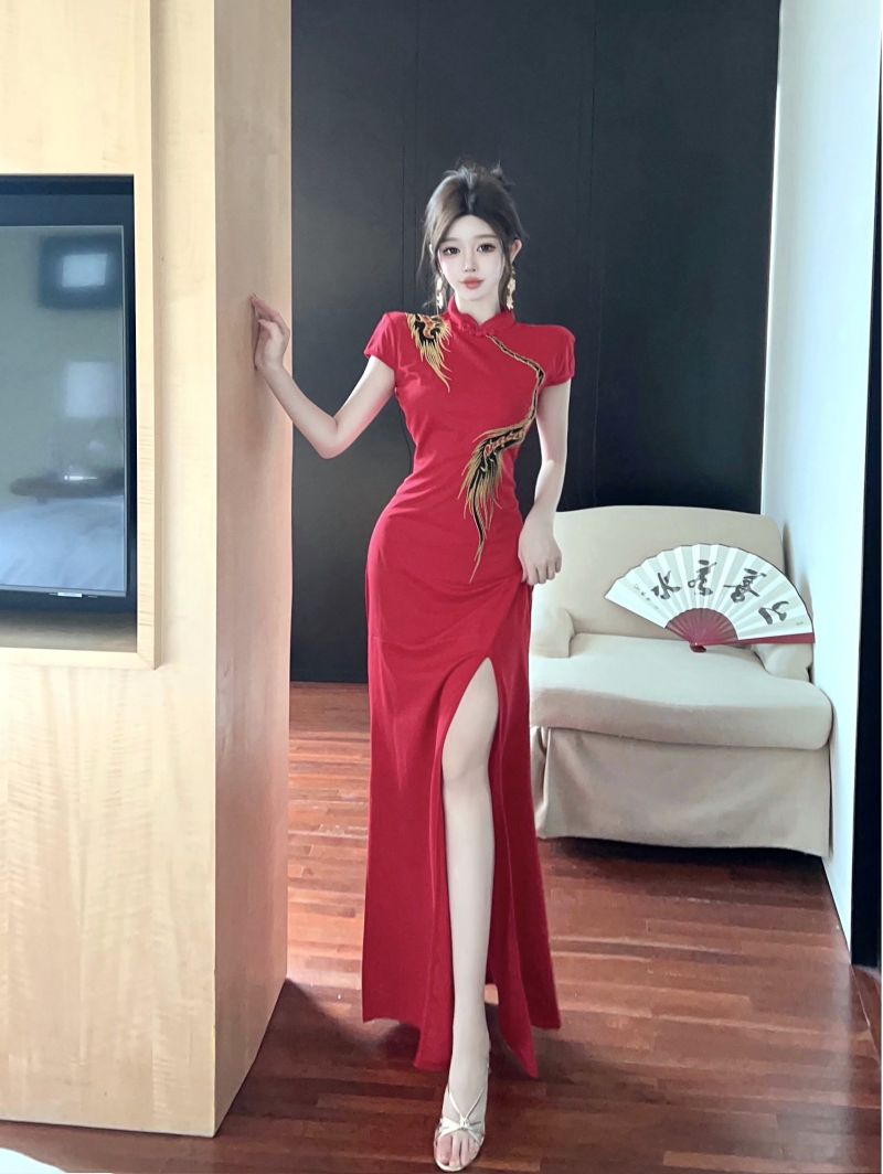 Home > 礼服、晚礼服 > 新款走秀旗袍高级感模特高端大气舞台演出服开叉鱼尾连衣裙