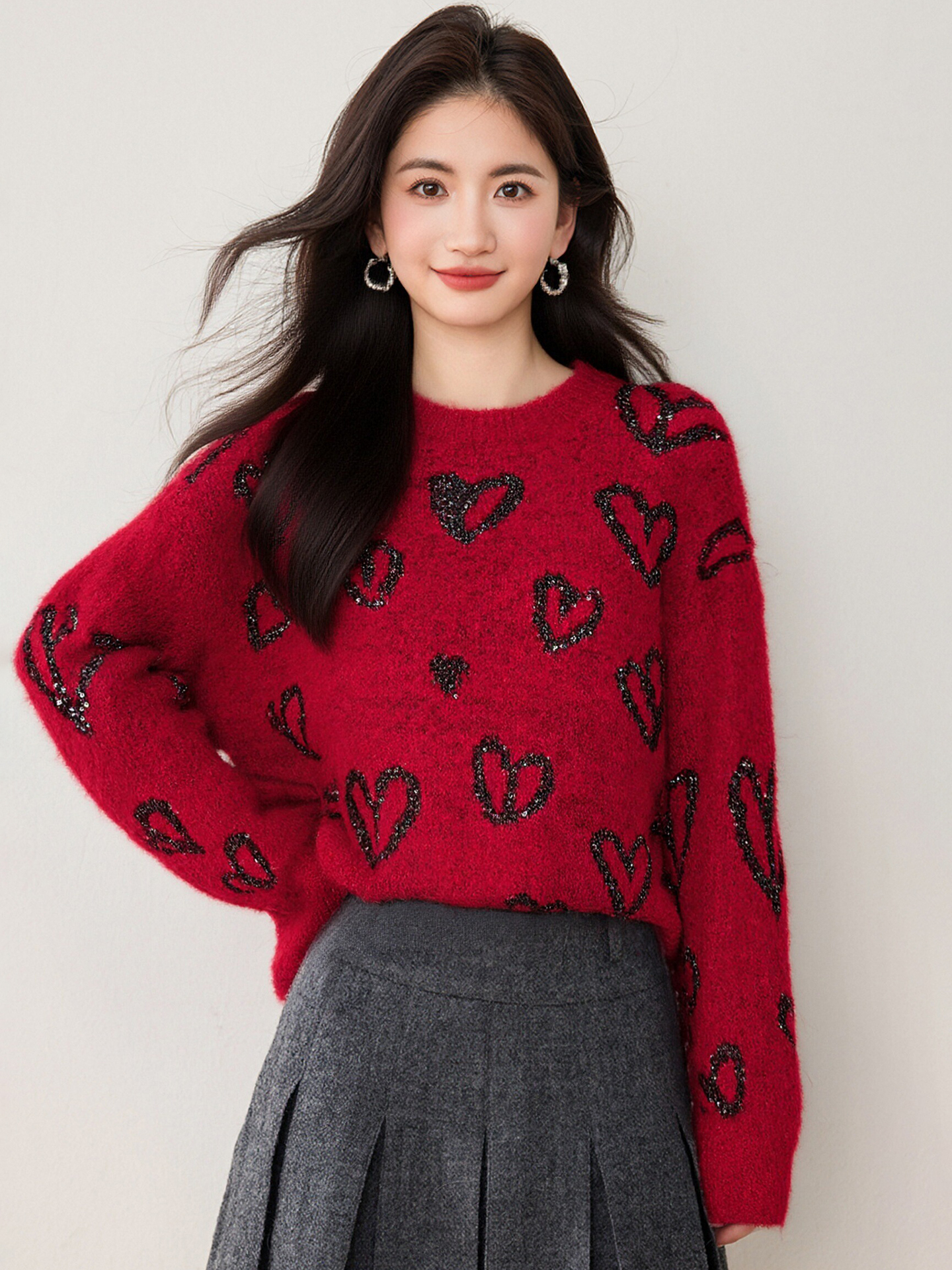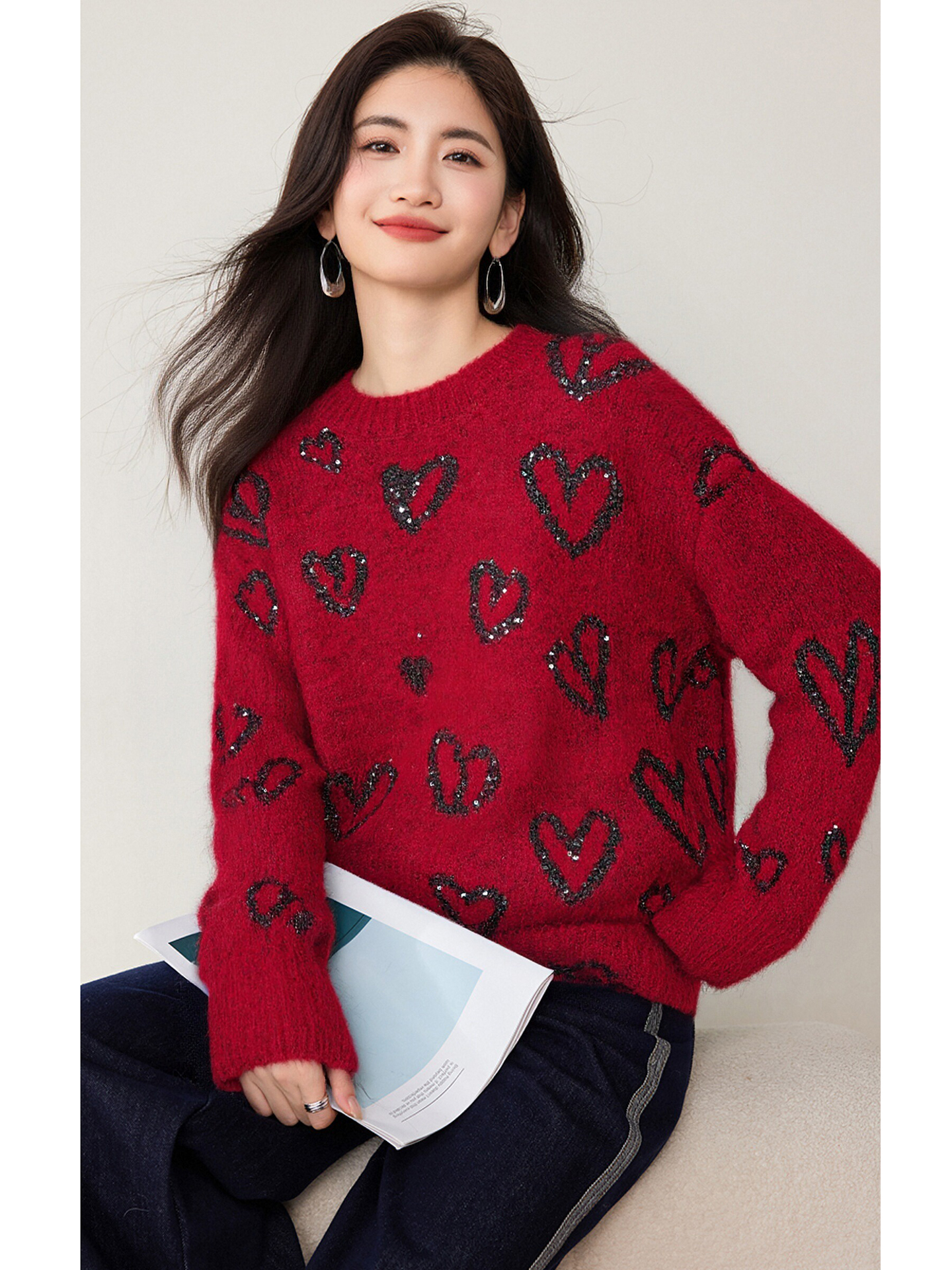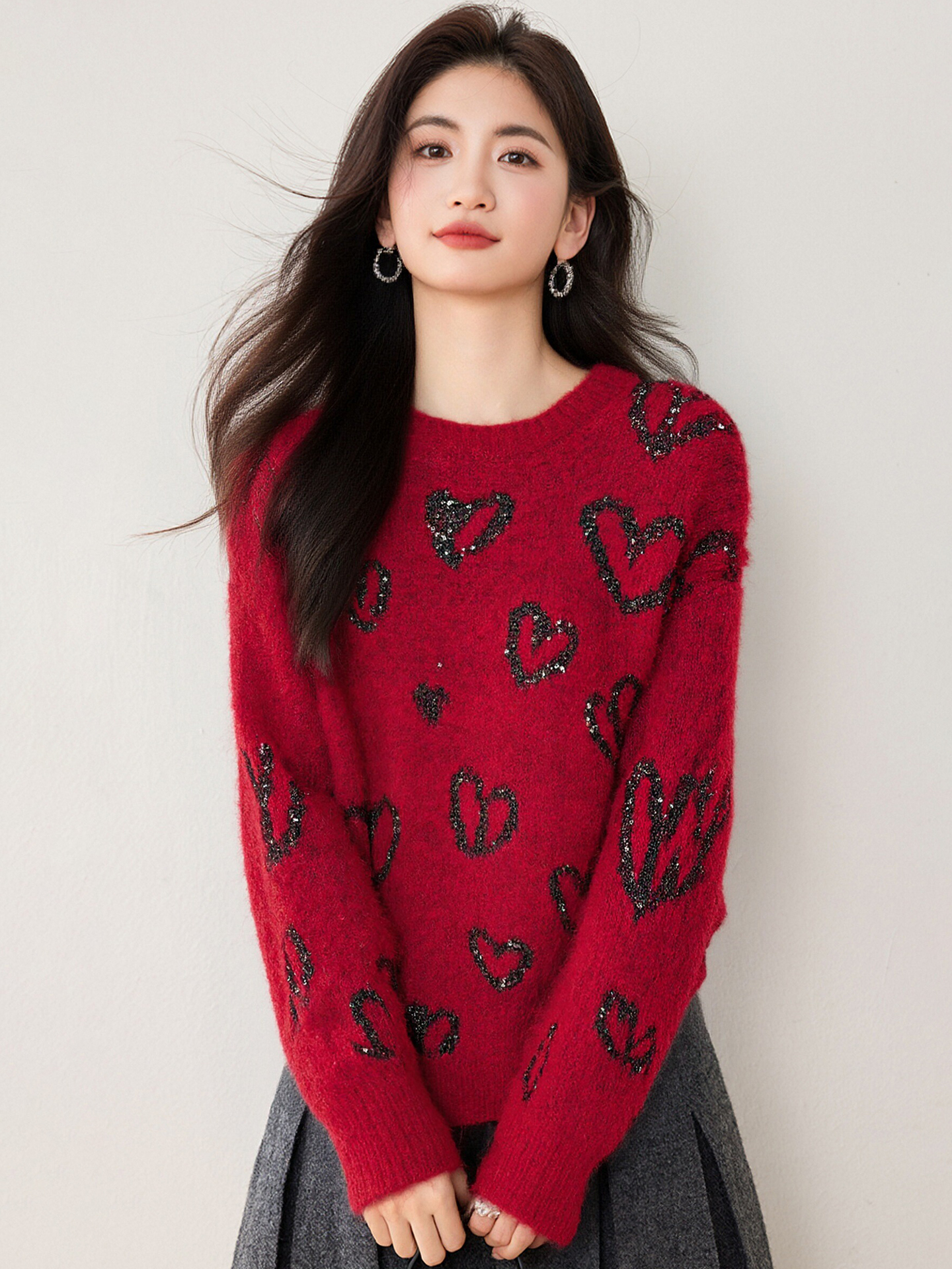 FA49555# 爱心亮片针织衫女秋冬百搭气质显瘦上衣