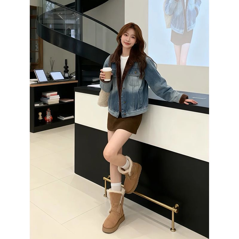 FA49608# 牛仔棉衣外套女冬季宽松学生小个子加绒加厚羊羔毛短款保暖棉服潮