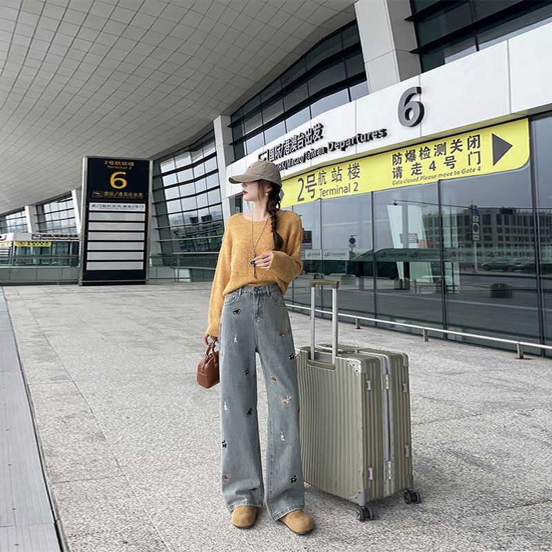 Home > 牛仔裤、长裤 > FA49818# -春秋复古蓝小狗刺绣阔腿牛仔裤女高腰休闲慵懒直筒拖地裤 服裝批發女裝批發服飾貨源