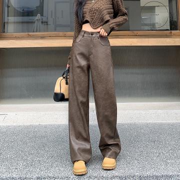 Home > 牛仔裤、长裤 > FA49882# 皮裤女新款咖色直筒显瘦休闲皮裤PU皮个性宽松阔腿裤子女秋冬 服裝批發女裝批發服飾貨源