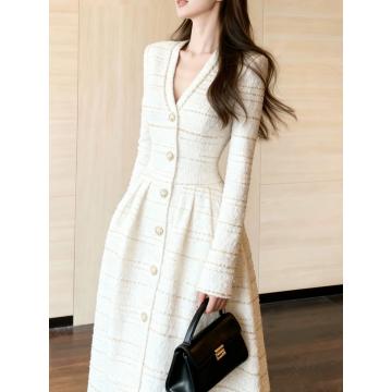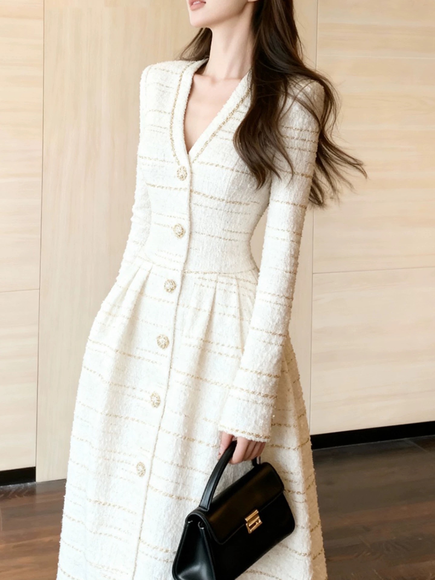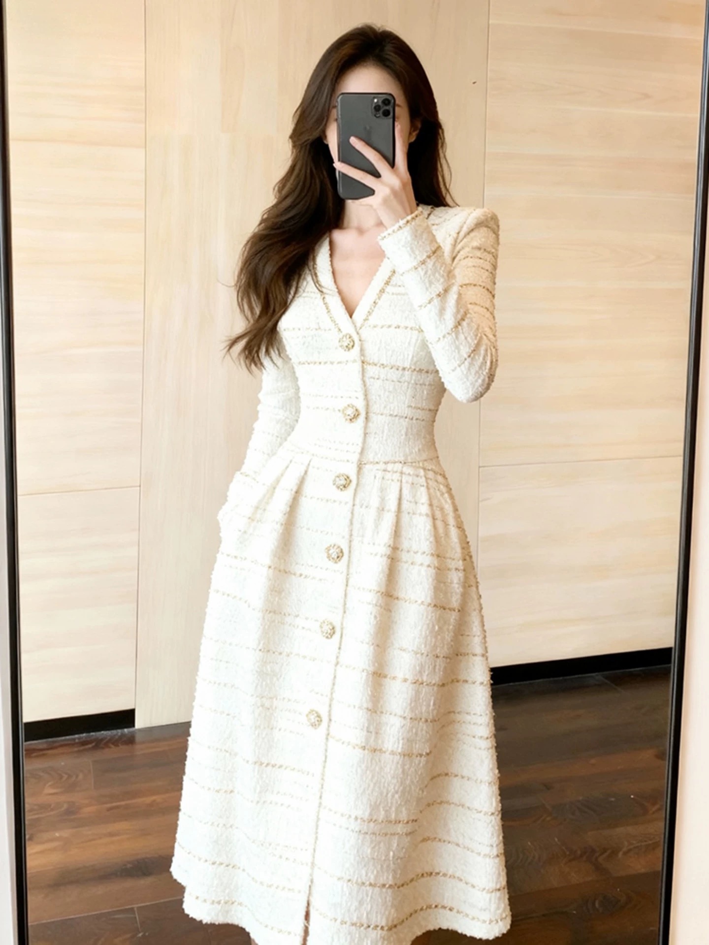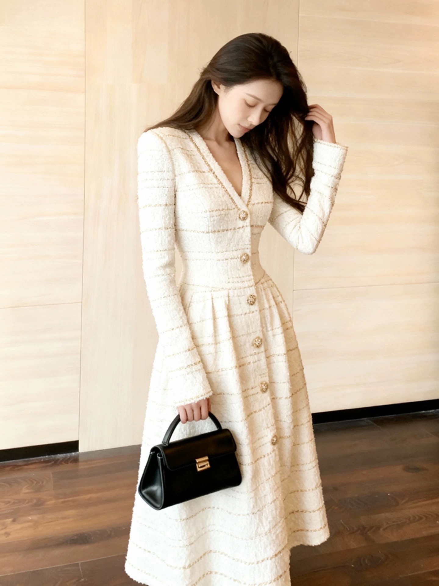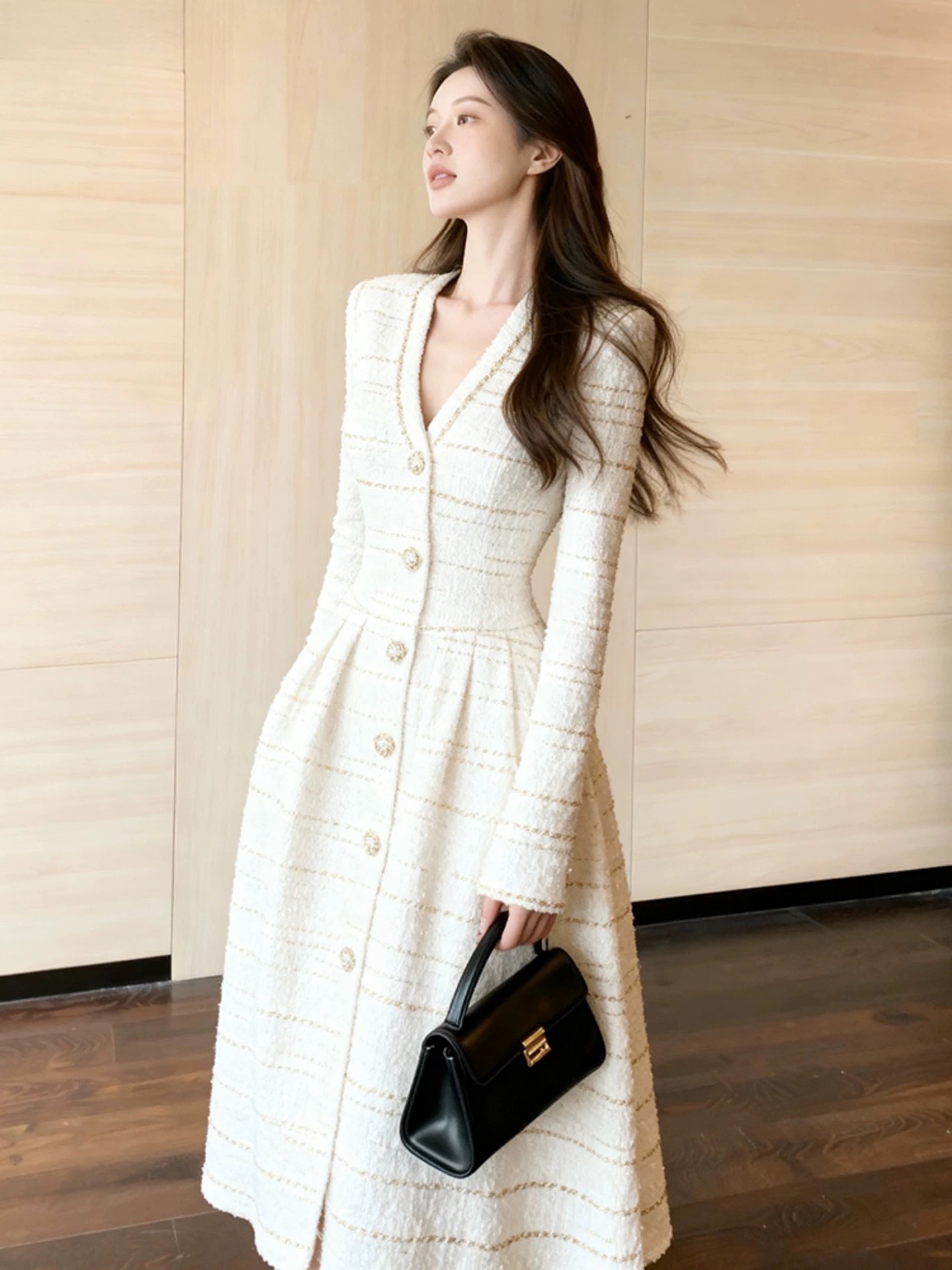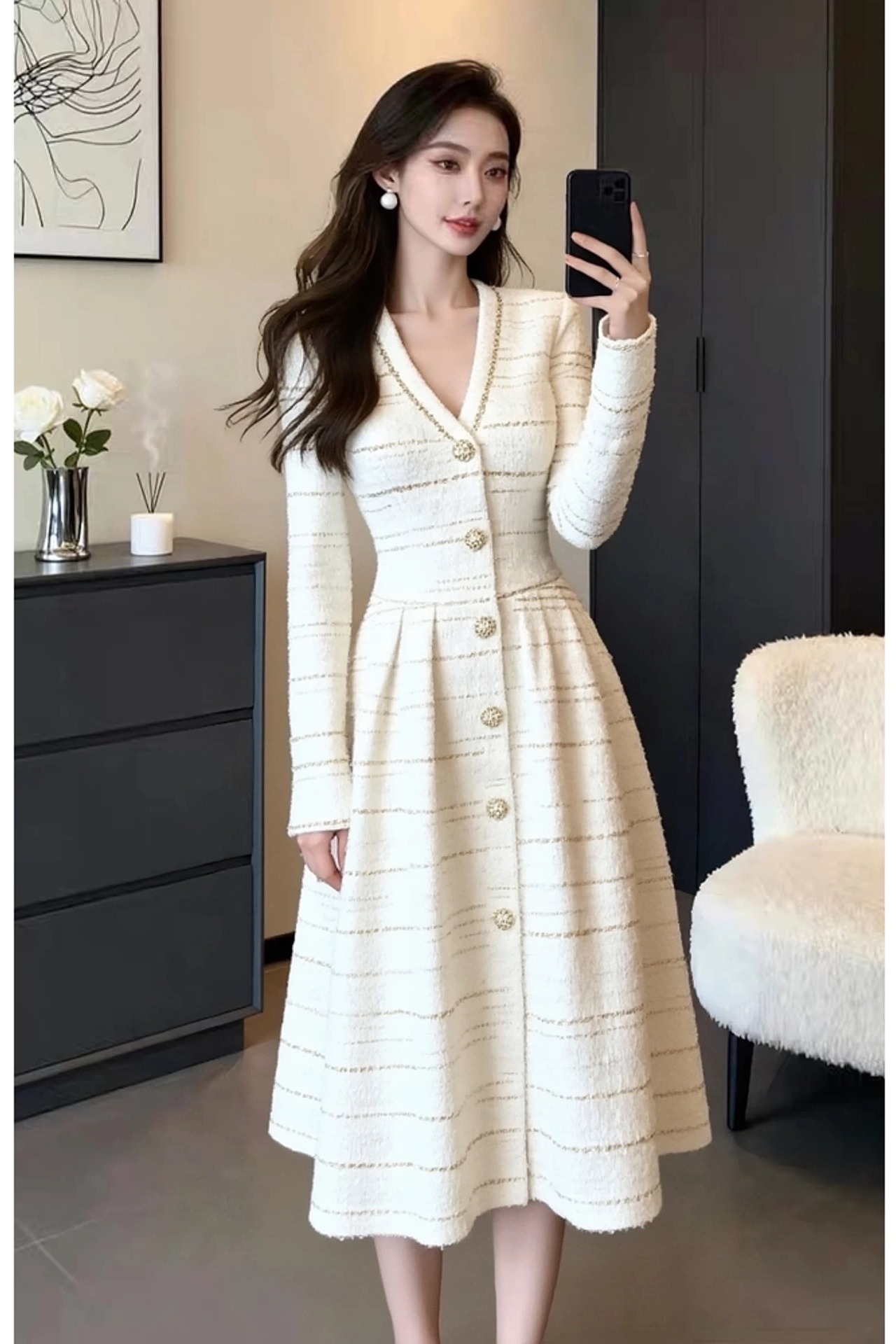 FA49897# 冬季穿搭独特超好看裙子高端精致厅里厅气出席重要场合白色连衣裙 服裝批發女裝批發服飾貨源