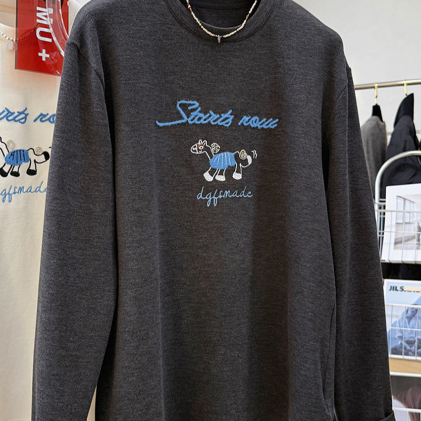 FA49903# 韩系卡通印花磨毛长袖T恤女秋冬内搭磨毛慵懒风宽松打底衫上衣ins 服裝批發女裝批發服飾貨源