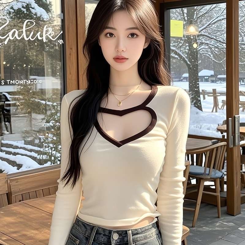 FA50227# 镂空打底衫女新款秋冬高级感内搭长袖t恤设计感独特别致上衣 服裝批發女裝批發服飾貨源