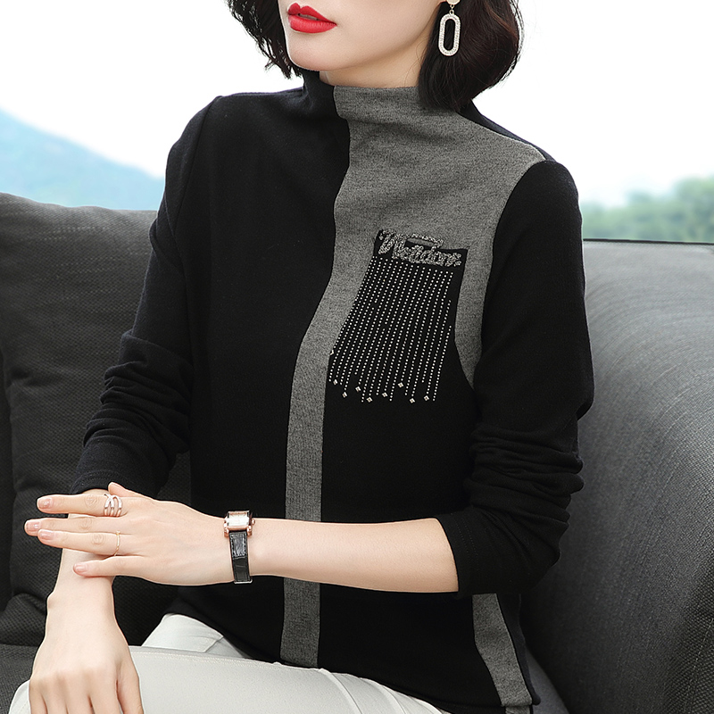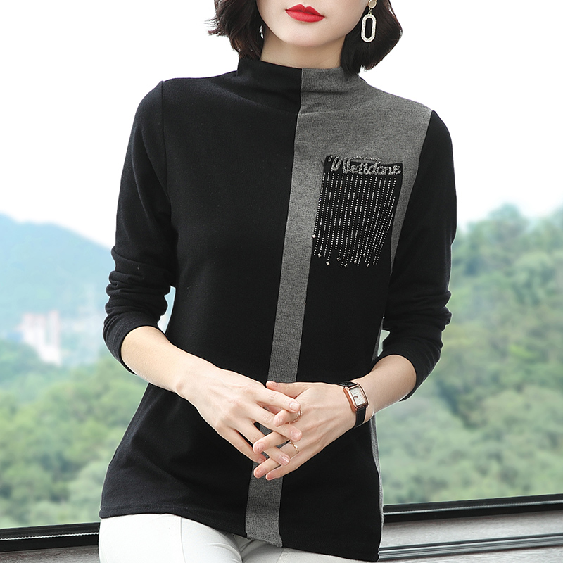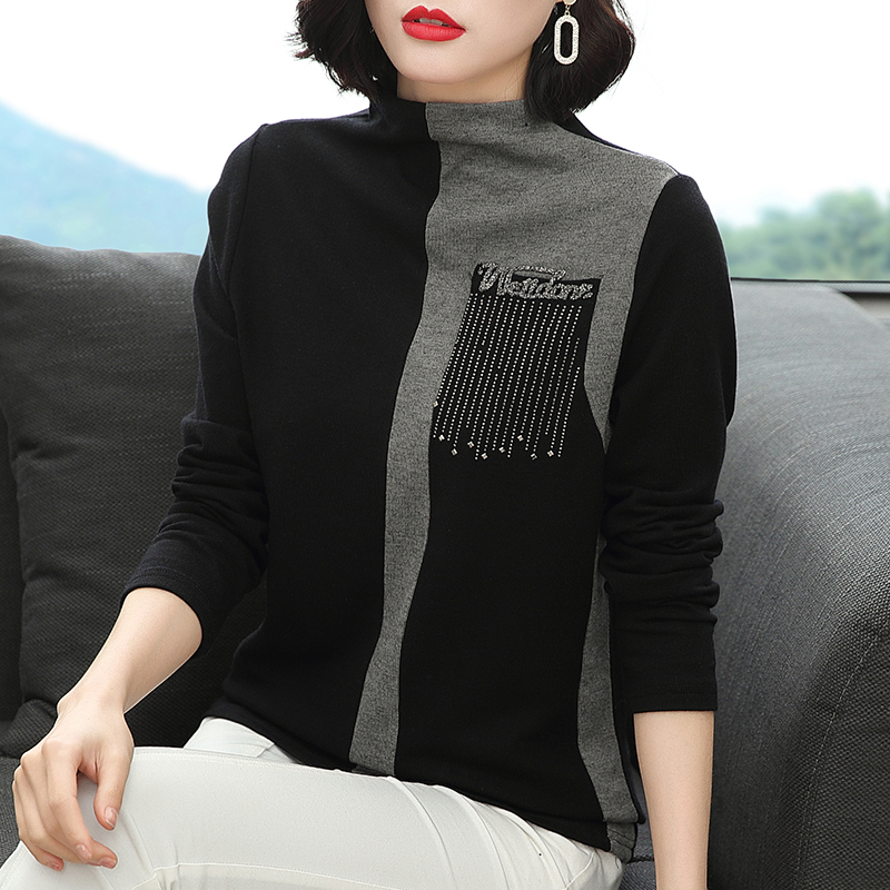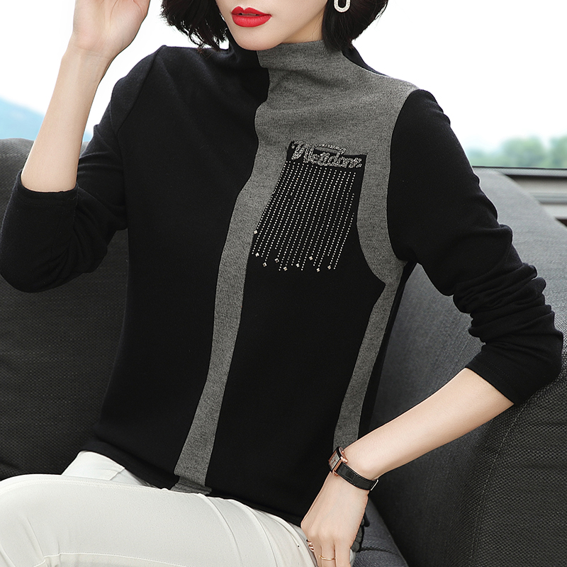 FA50252# 抓绒加厚打底衫女长袖春秋新款高领内搭烫钻洋气百搭时尚小衫 服裝批發女裝批發服飾貨源