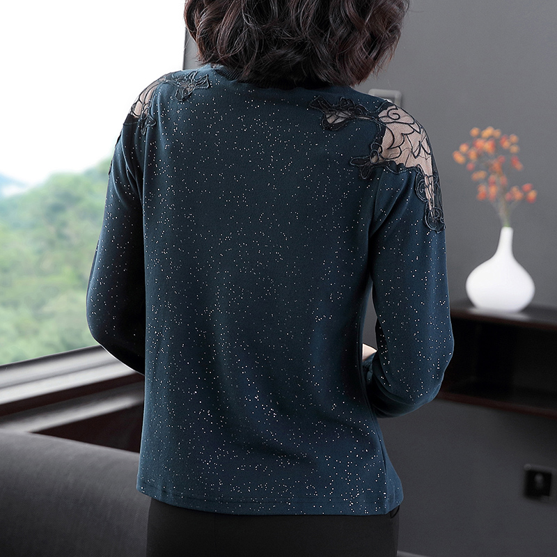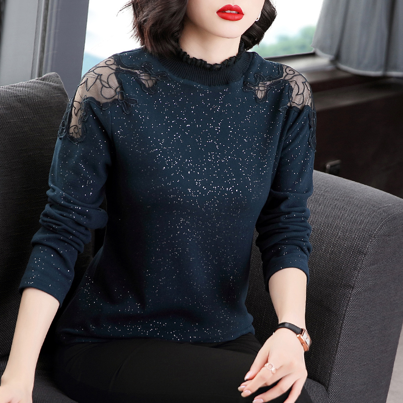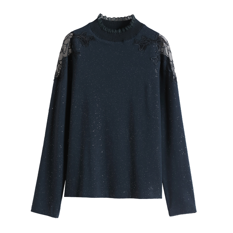 FA50256# 高领打底衫女秋冬新款修身长袖性感镂空洋气小衫内搭亮丝上衣 服裝批發女裝批發服飾貨源