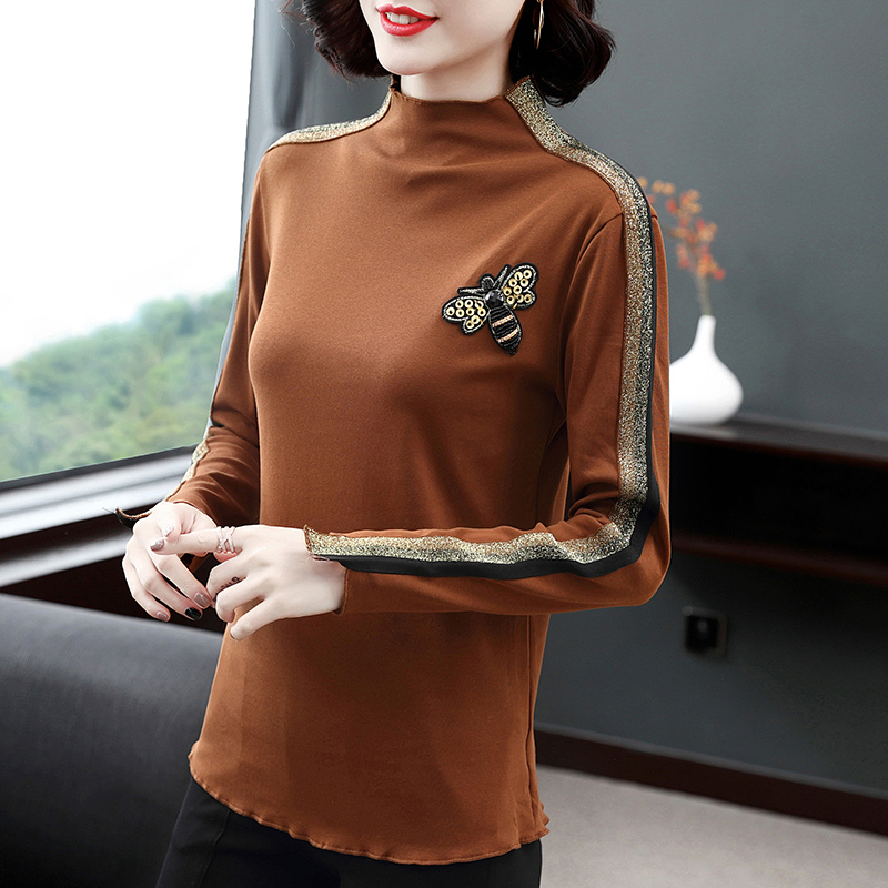 FA50262# 半高领打底衫长袖秋冬新款女装高领t恤女式洋气小衫 服裝批發女裝批發服飾貨源