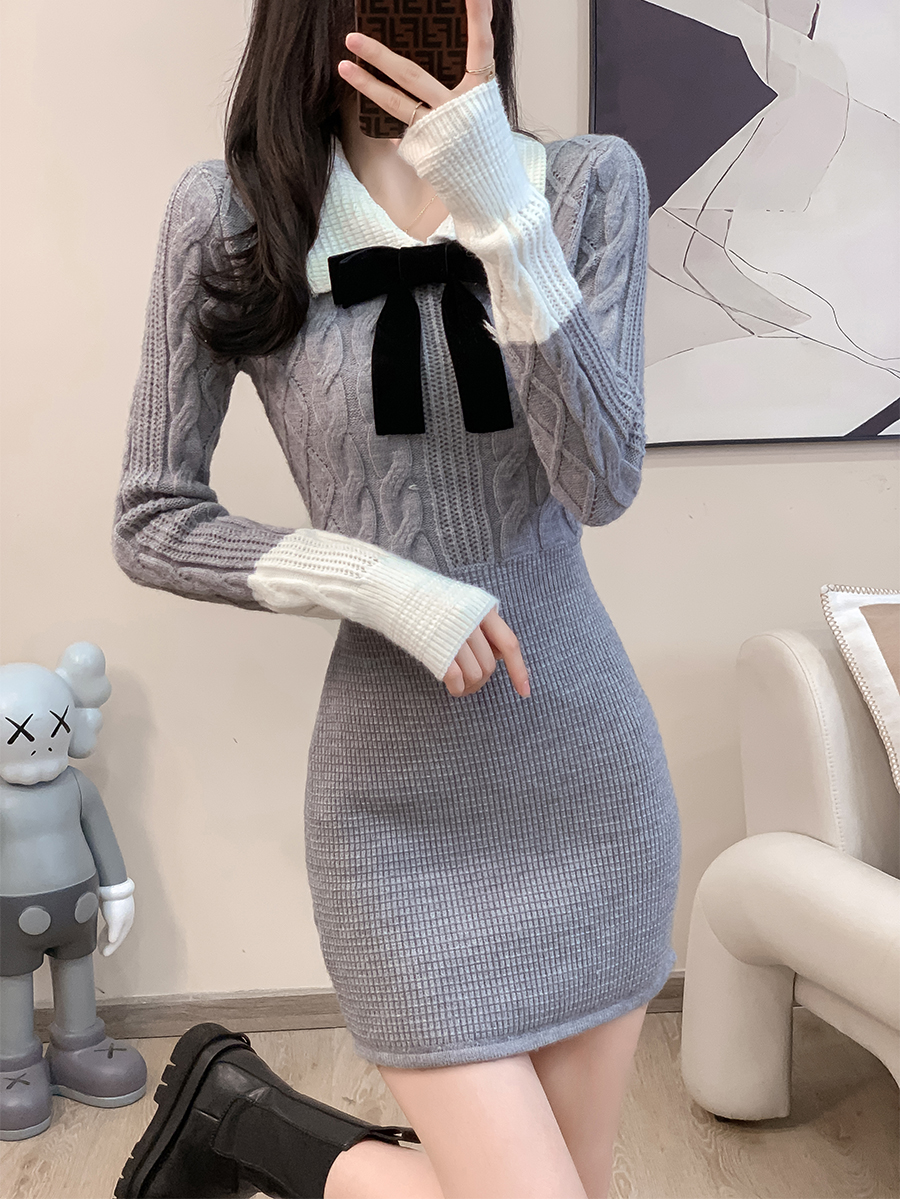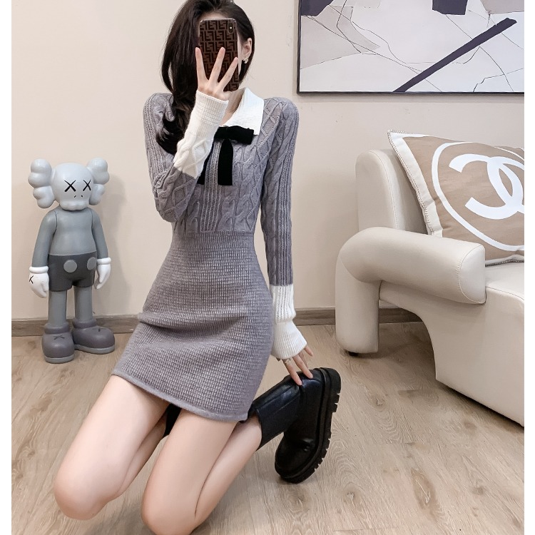 FA50289# 韩国气质小香风配大衣针织连衣裙女秋冬小个子包臀内搭打底毛衣裙 服裝批發女裝批發服飾貨源