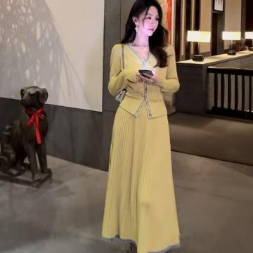 FA50292# 千金洋气减龄小香风开衫+百褶裙2件套套装 服裝批發女裝批發服飾貨源