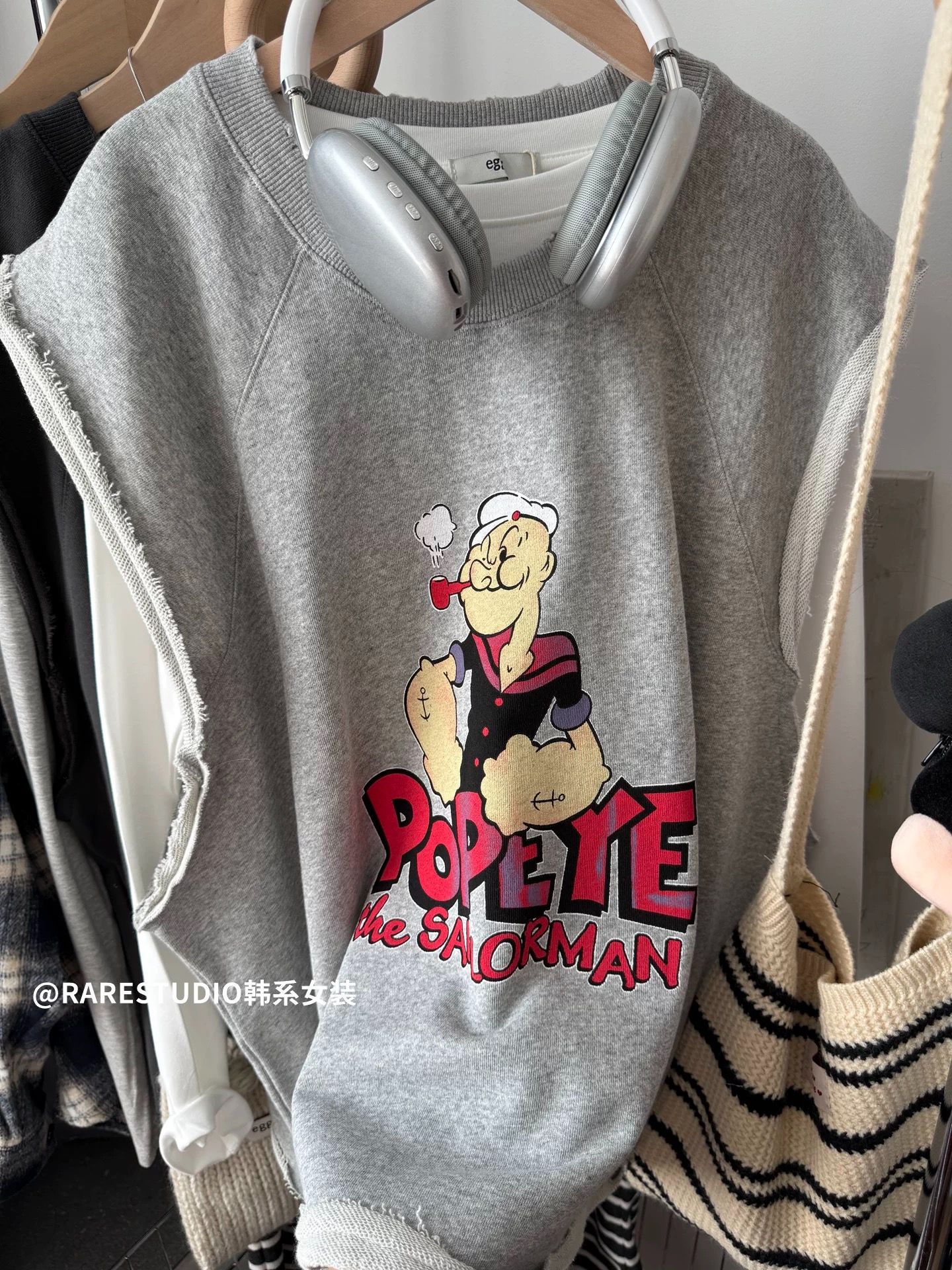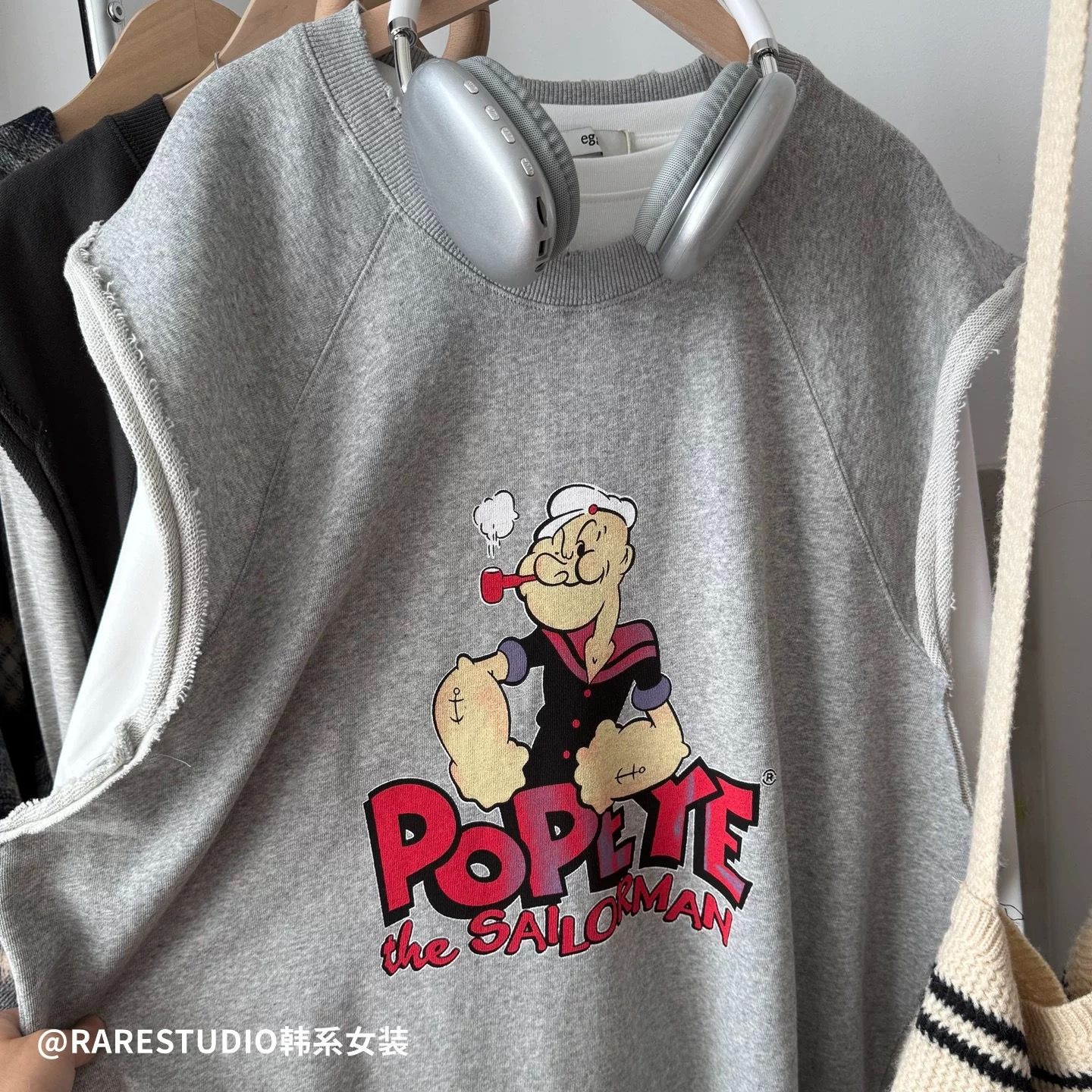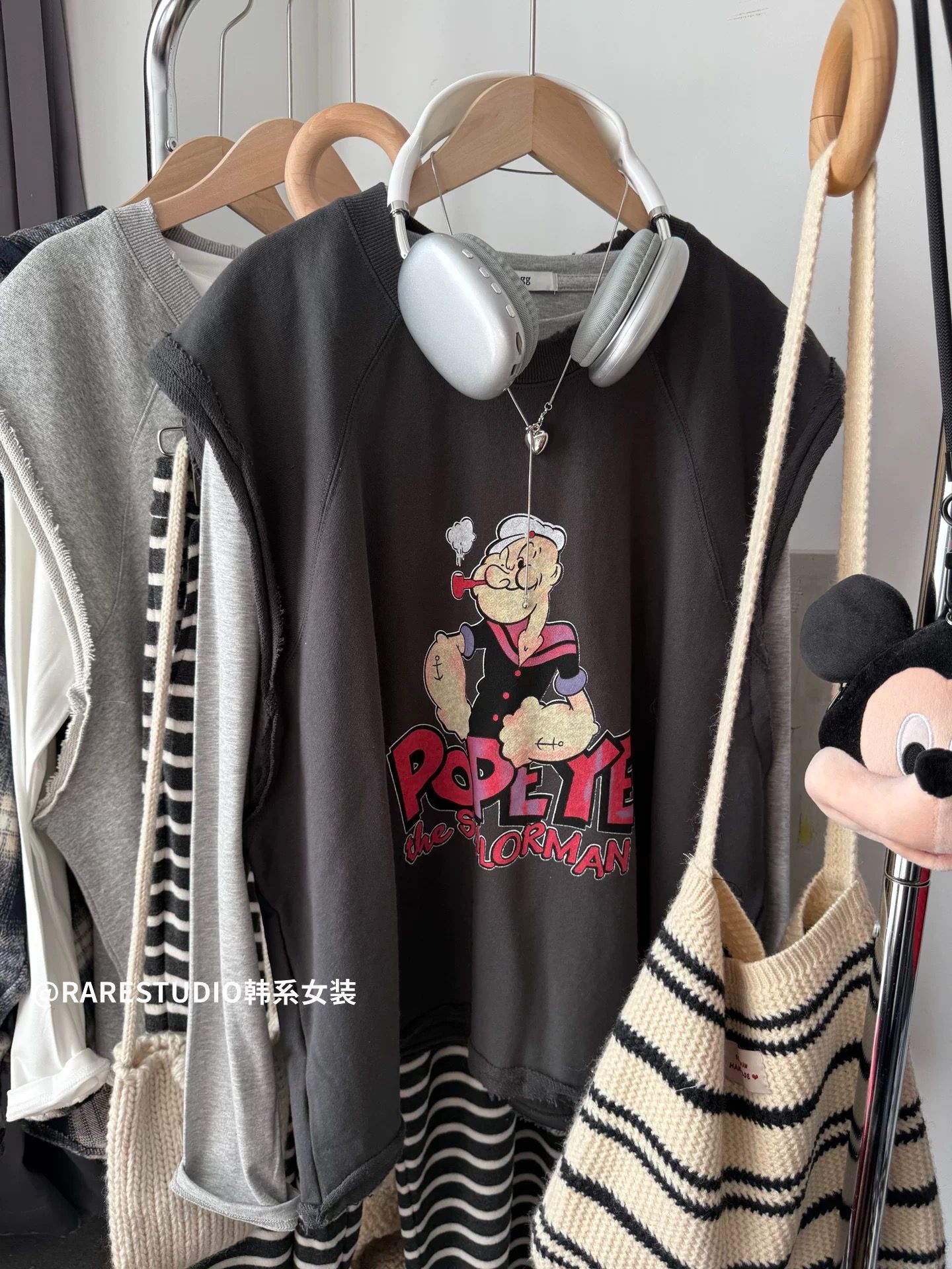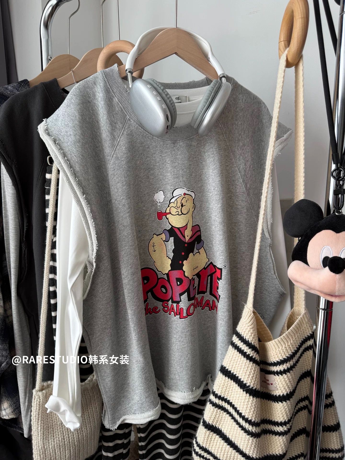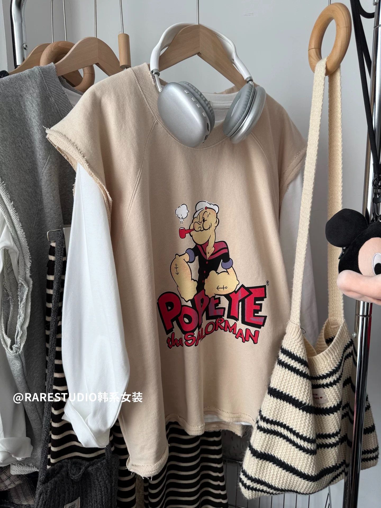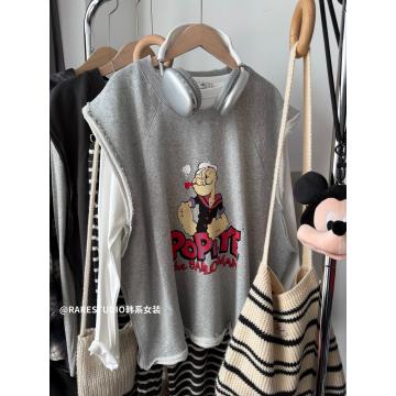 FA50351# 原版质量特大码300斤韩系印花两件套上衣女春秋新款T恤马甲套装超 服裝批發女裝批發服飾貨源
