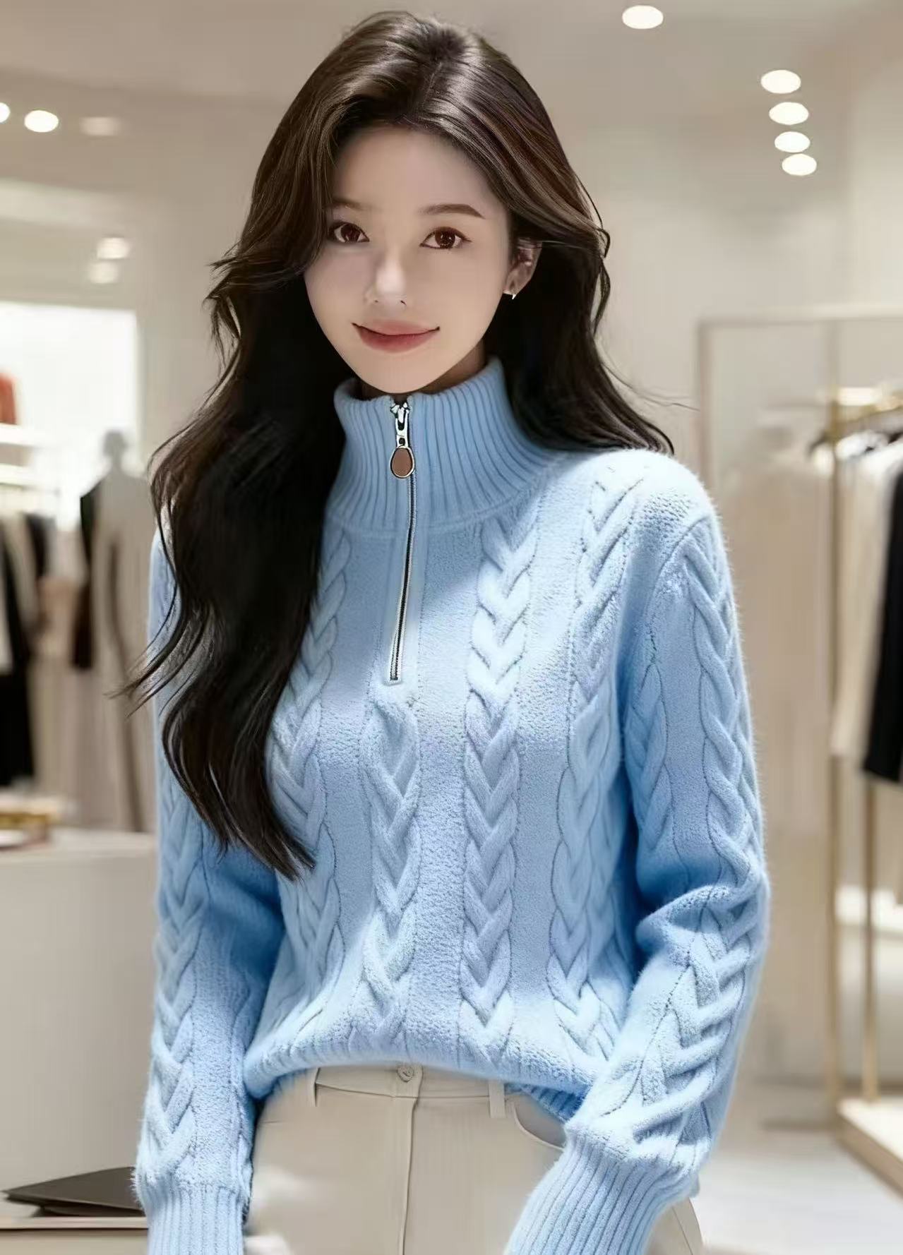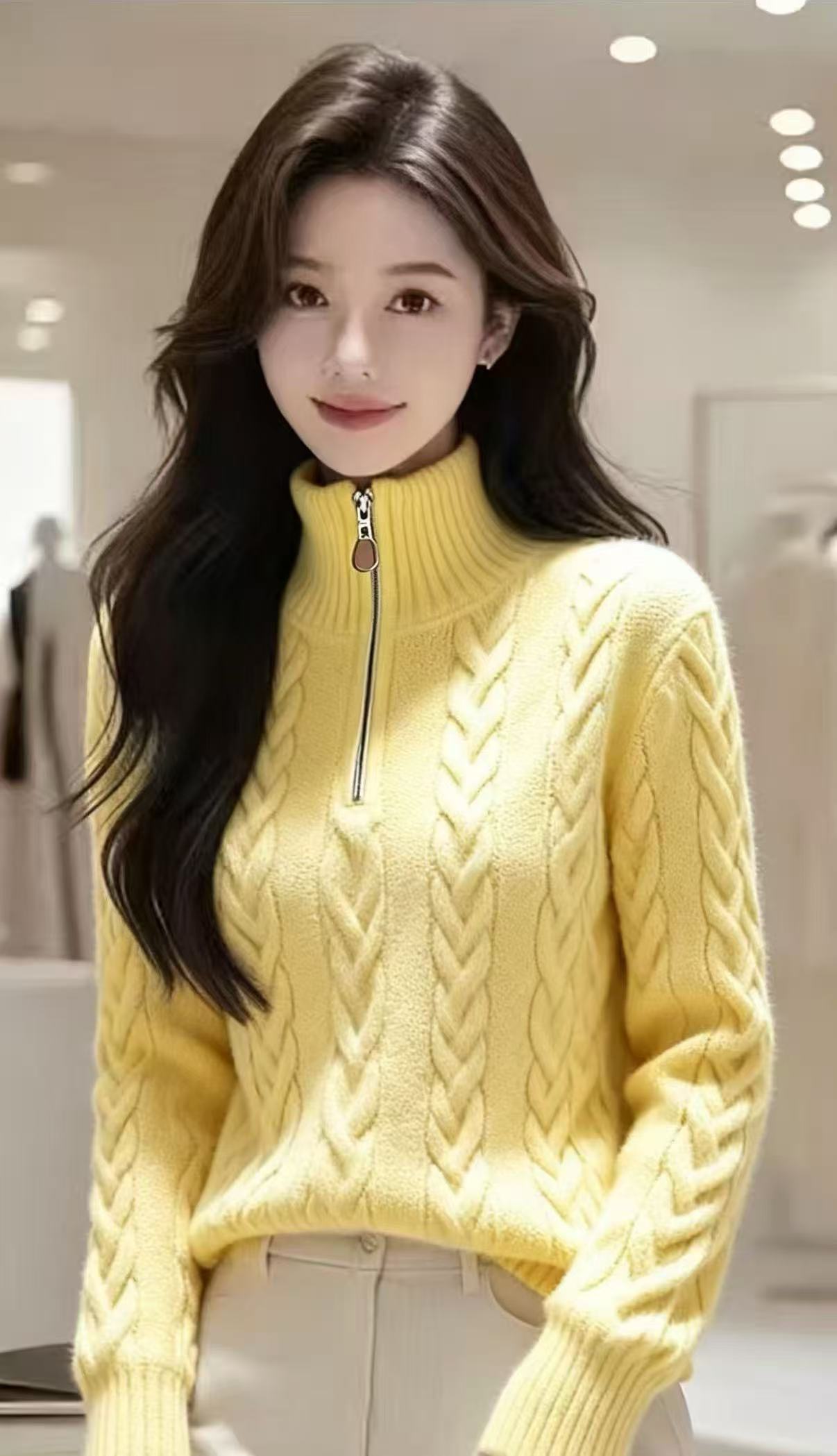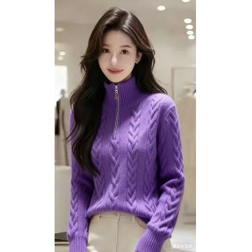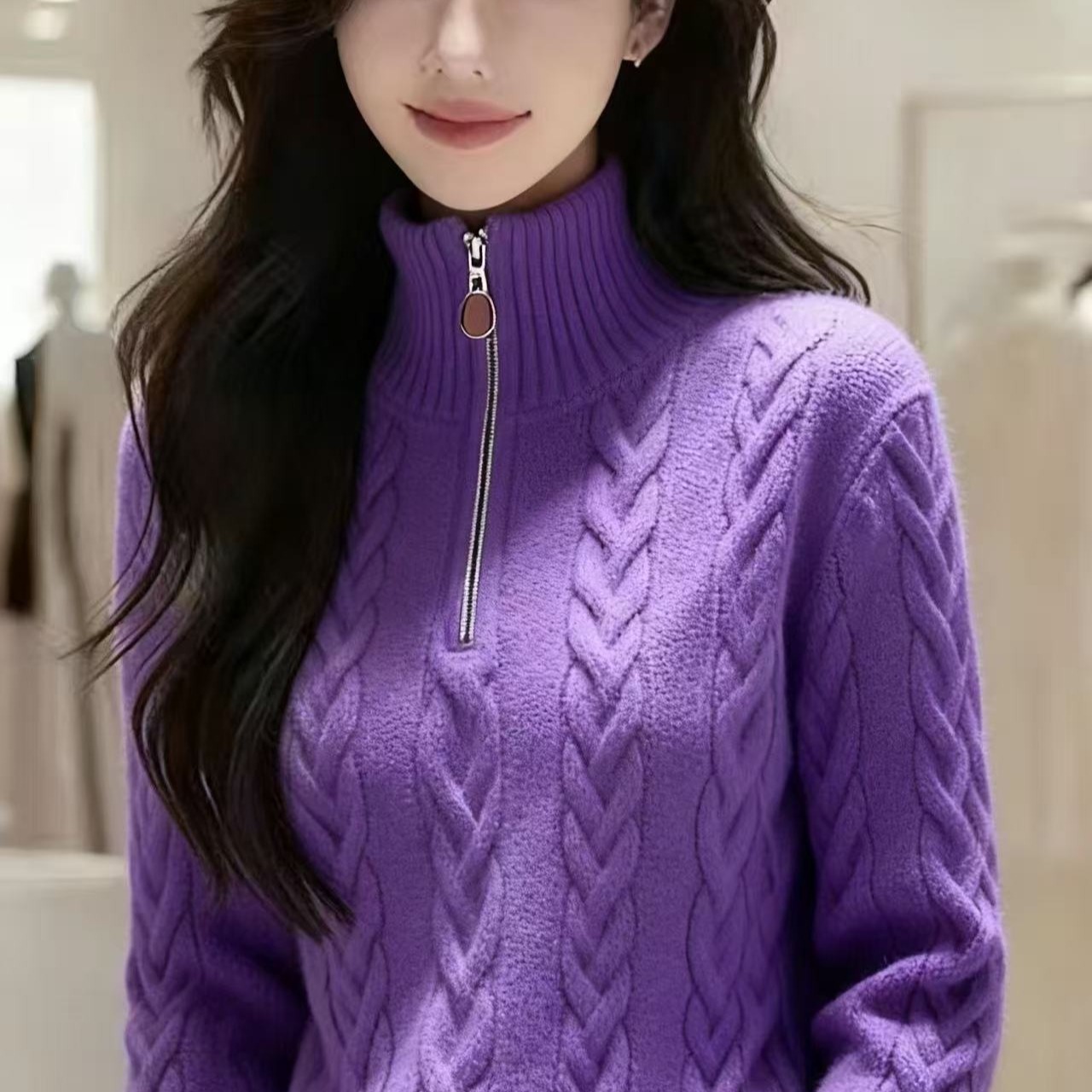FA50365# 纯羊毛衫女半拉链立领加厚保暖外搭打底秋冬季新款高级感舒适毛衣 服裝批發女裝批發服飾貨源