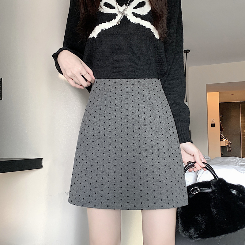 FA50412# 秋冬韩版复古高腰毛呢chic保暖圆点点包臀A字半身裙 服裝批發女裝批發服飾貨源