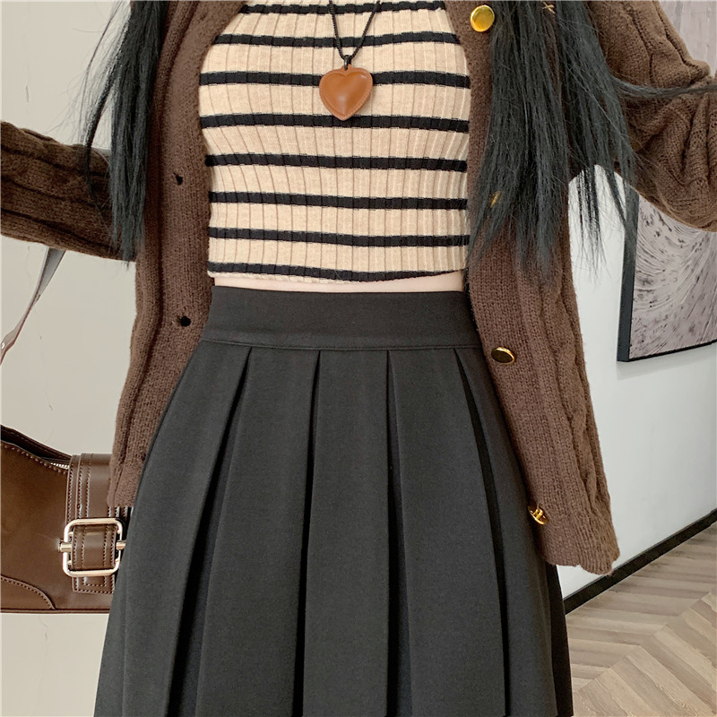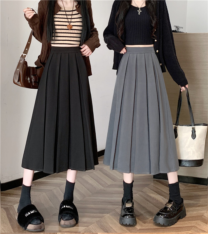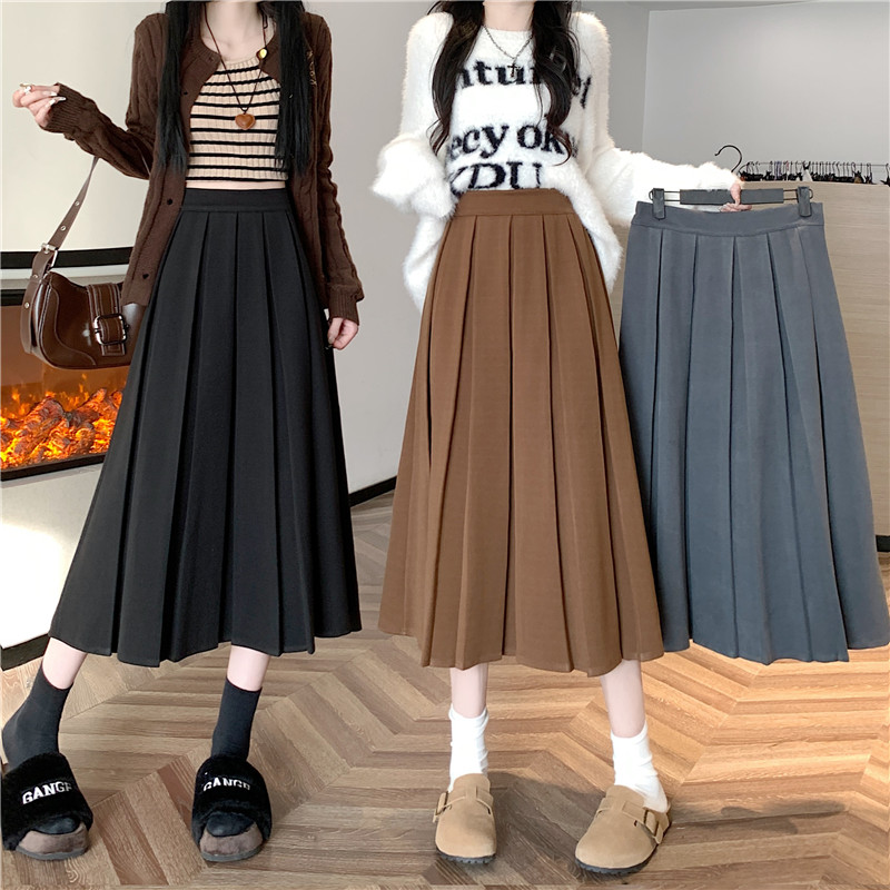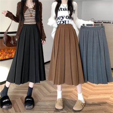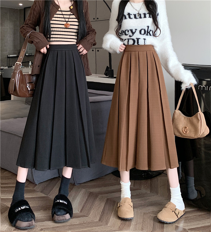 FA50413# 冬季韩版百褶裙加厚毛呢A字裙别致设计感半身裙中长裙纯色 服裝批發女裝批發服飾貨源