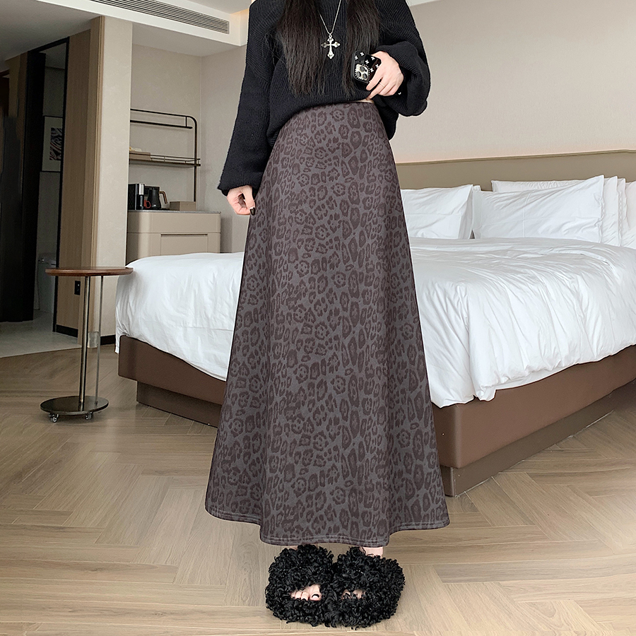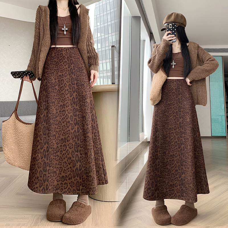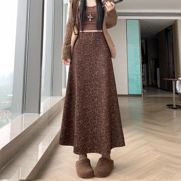 FA50658# 新网红高级亲肤豹纹半身包臀鱼尾长裙松紧腰中长裙 服裝批發女裝批發服飾貨源