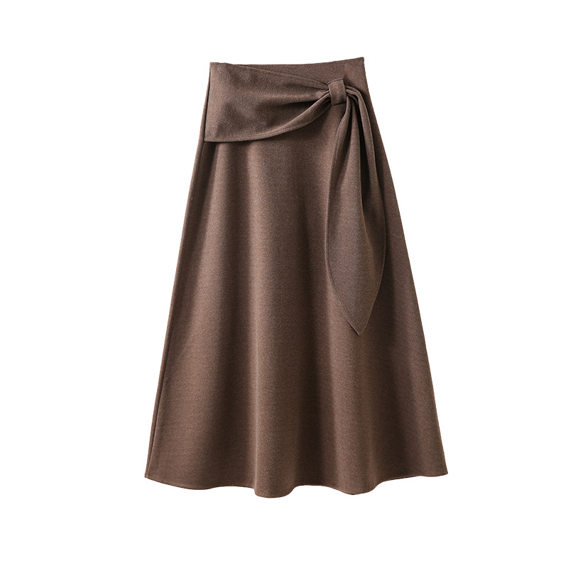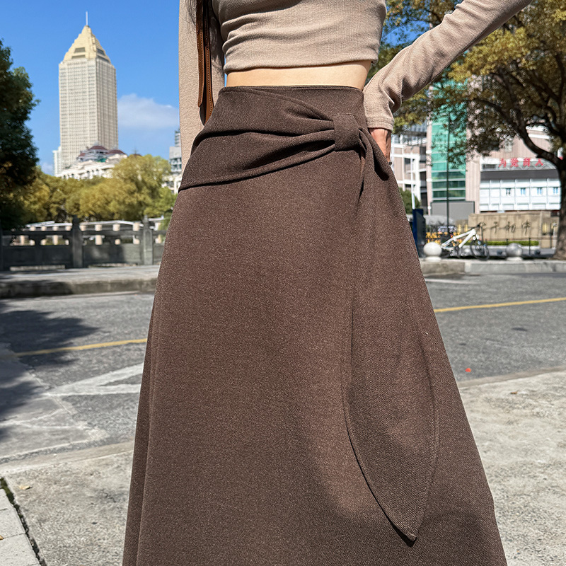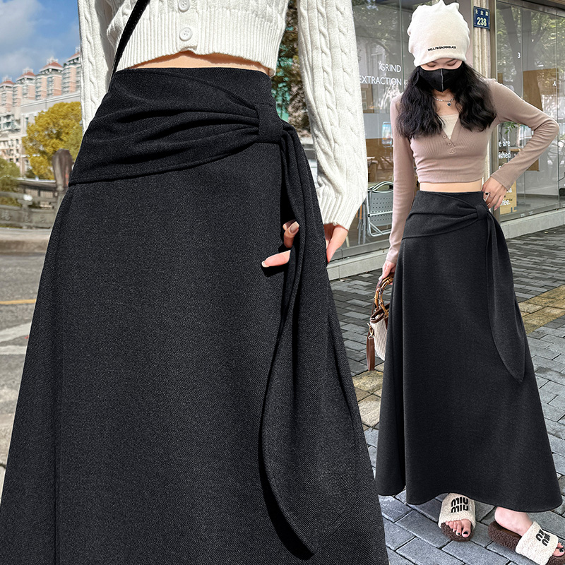 FA50671# 毛呢半身裙女冬新款设计感绑带高腰长裙遮胯显瘦气质复古a字伞裙 服裝批發女裝批發服飾貨源