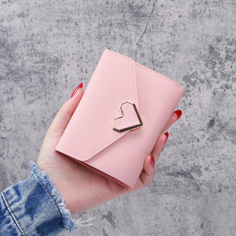 TJ2126# 工厂直销批发2020新款复古小清新金属心形短款小钱包女士学生钱包