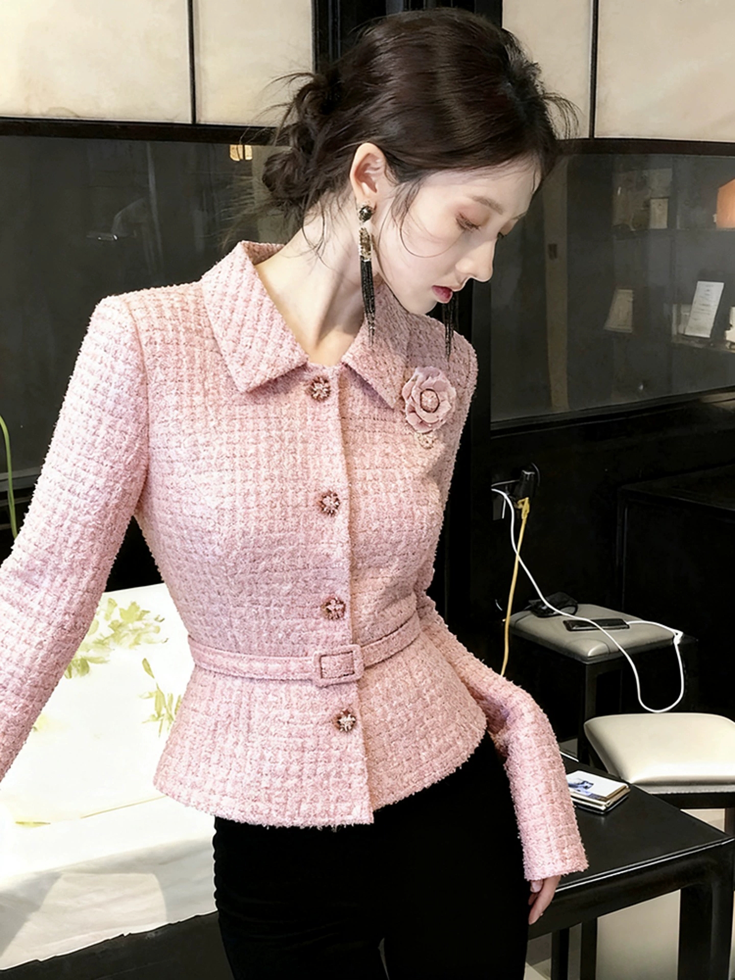 FA50820# 粉色小香风外套女秋冬高端时髦洋气名媛独特减龄气质收腰短款上衣 服裝批發女裝批發服飾貨源