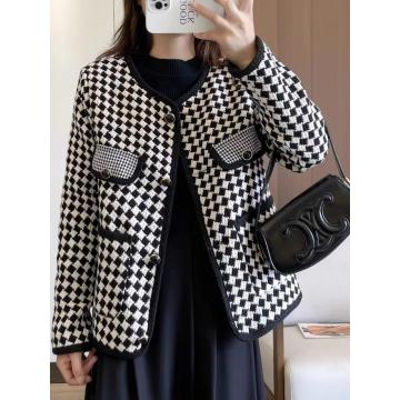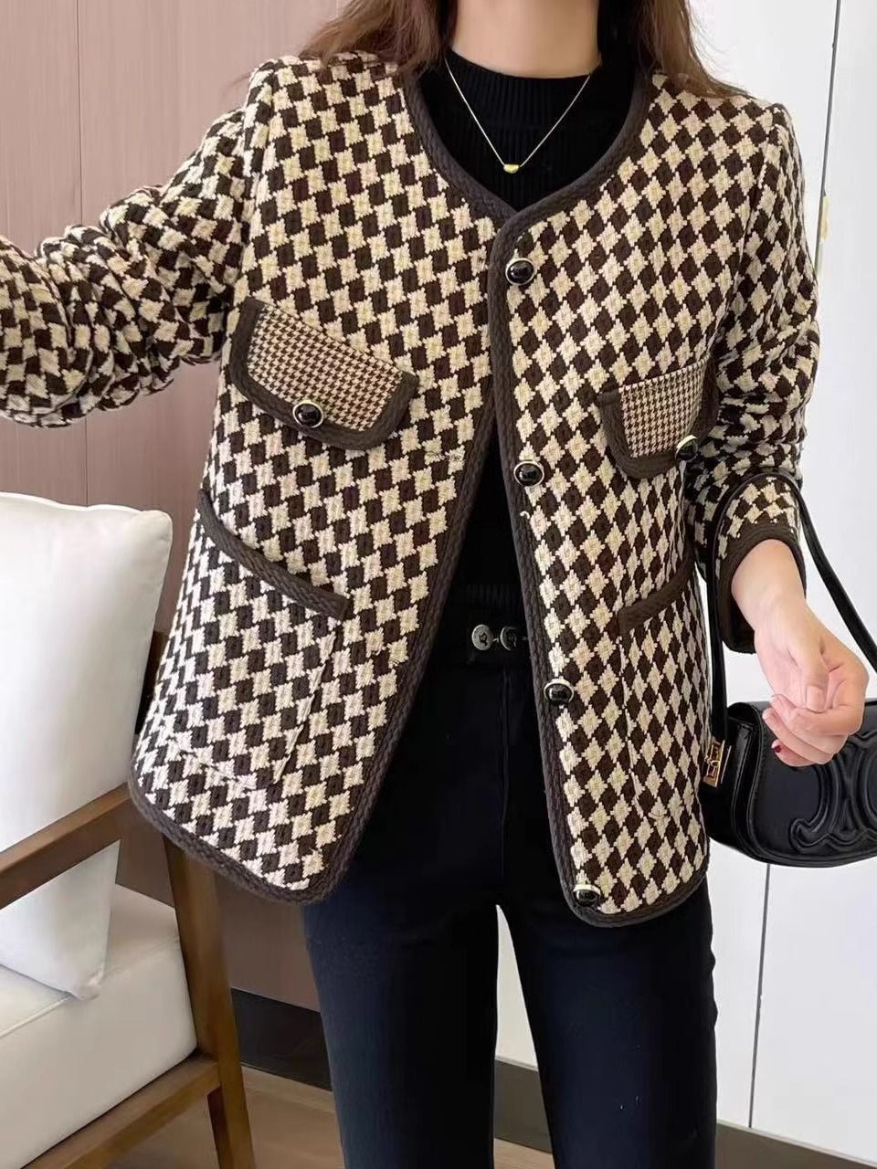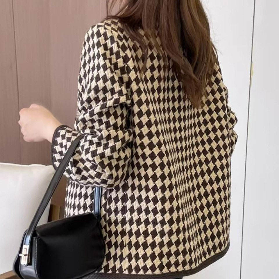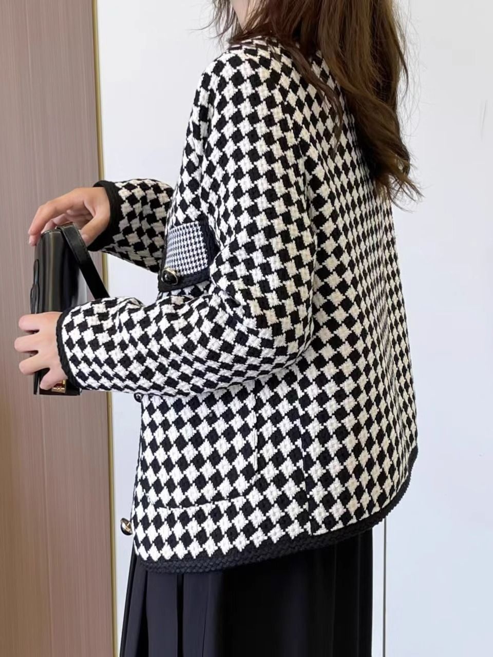 FA50844# 小香风千鸟格短款外套女春秋新款高级感时尚洋气时髦长袖上衣 服裝批發女裝批發服飾貨源