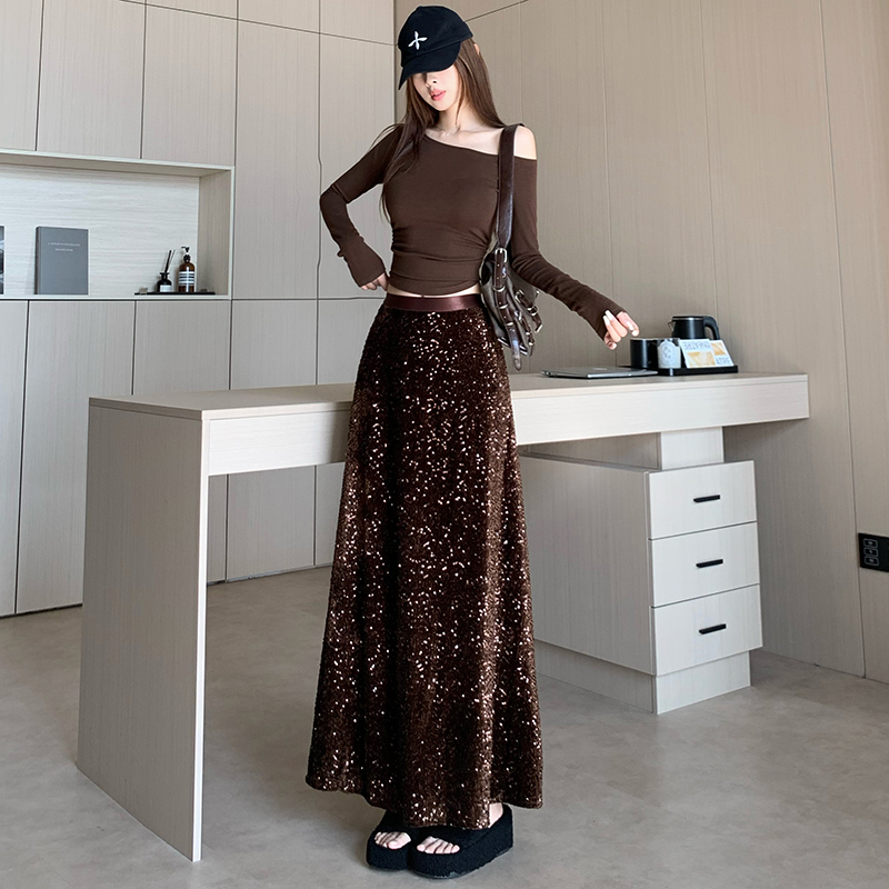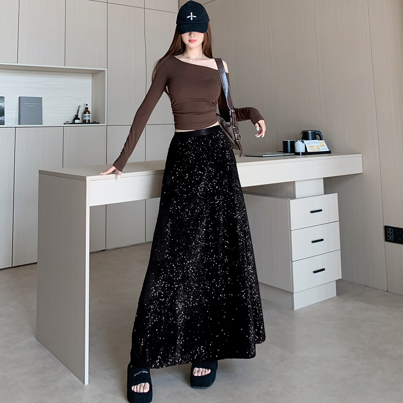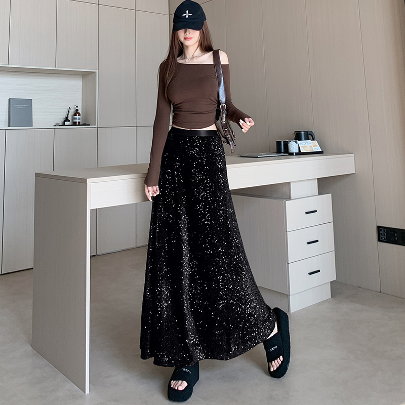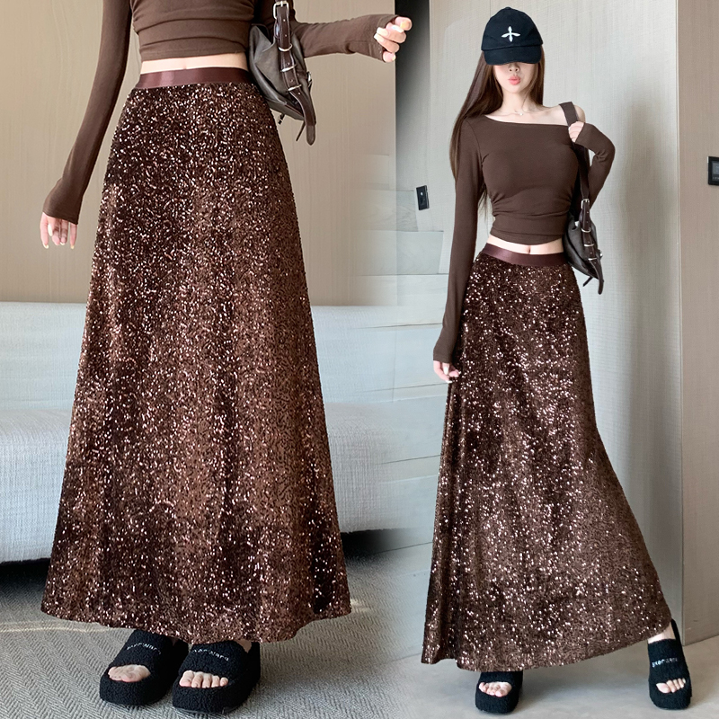 FA50964# 高级感亮片鱼尾半身裙女秋冬新款高腰显瘦百搭气质包臀a字大摆裙 服裝批發女裝批發服飾貨源