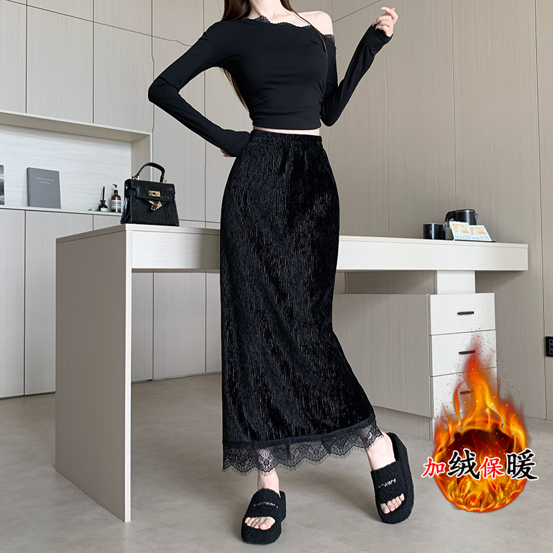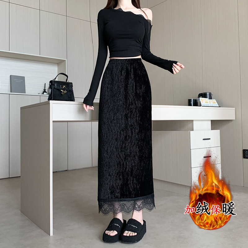 FA50969# 冬季新款韩版加绒压皱直筒裙时尚气质高级感休闲裙子 服裝批發女裝批發服飾貨源