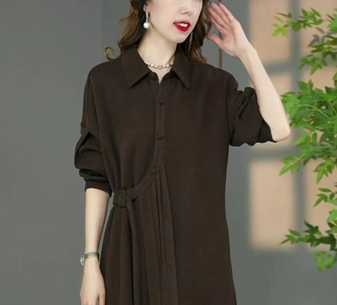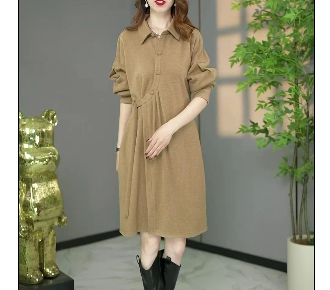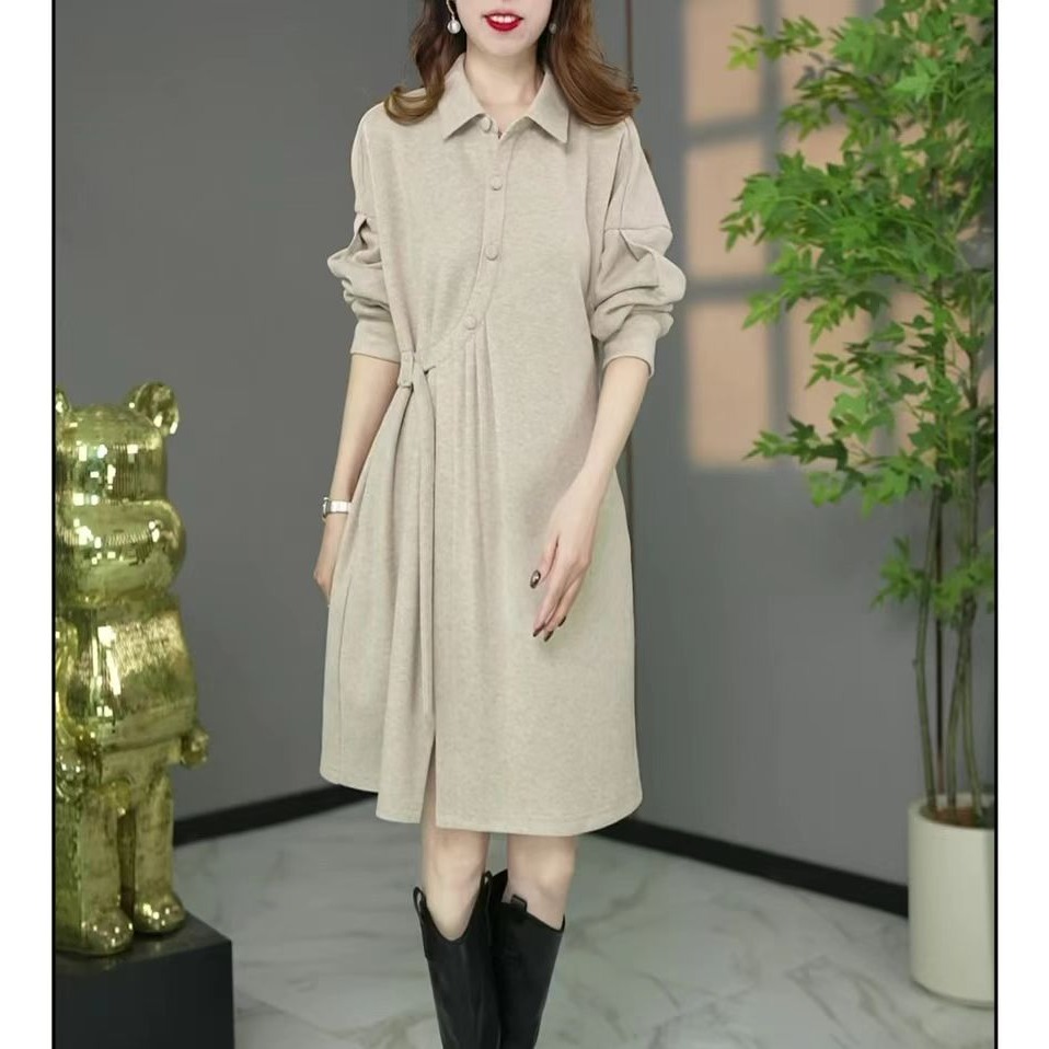 FA50979# 原创设计师款高货欧版洋气加厚衬衣领宽松遮肉连衣裙a字打底裙 服裝批發女裝批發服飾貨源