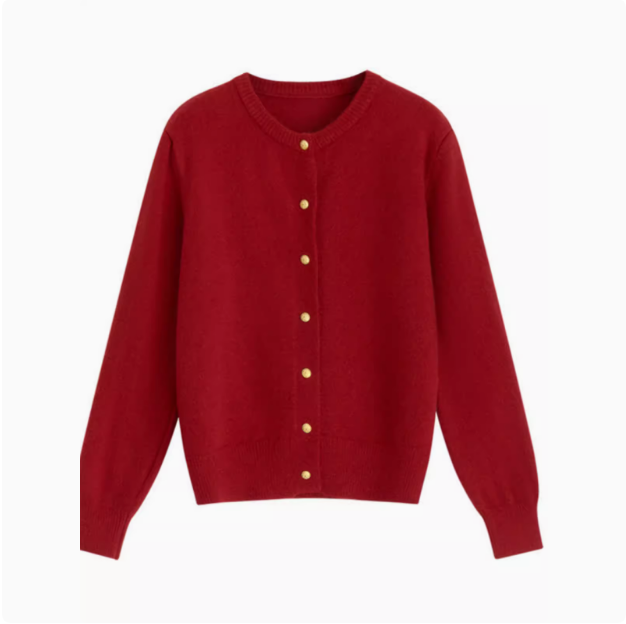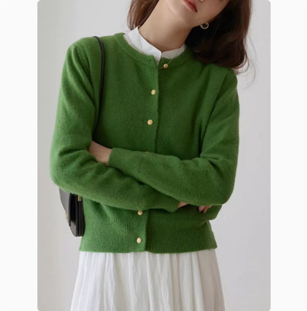 FA50985# LN76390# 秋冬新款圆领清新小众小金扣针织开衫女简约休闲基础纯色毛衣
