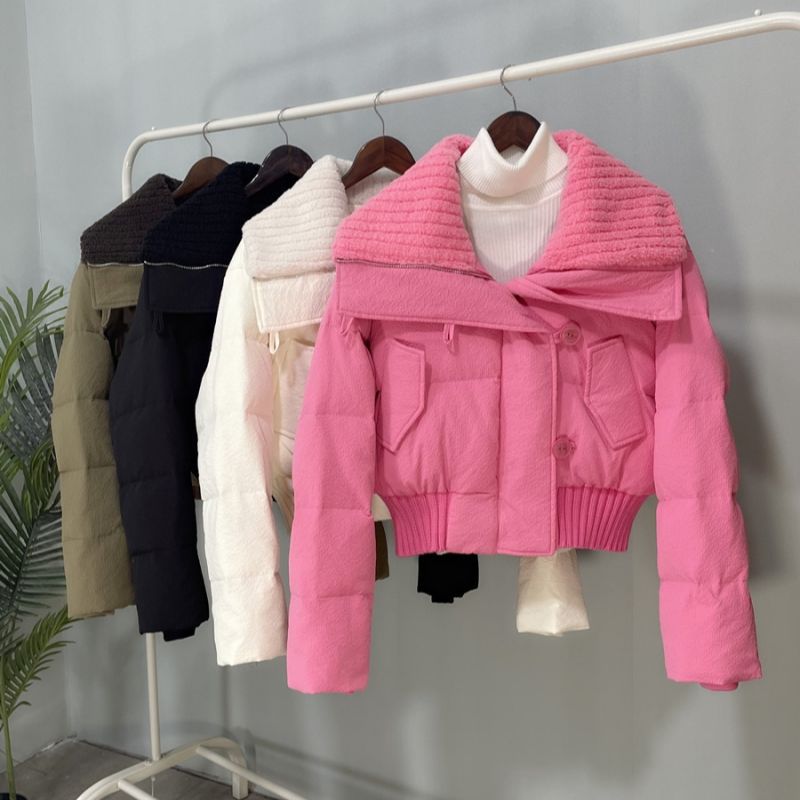 FA51012# 纯色棉服女冬季新款韩版设计感高腰大翻领短款面包服外套 服裝批發女裝批發服飾貨源