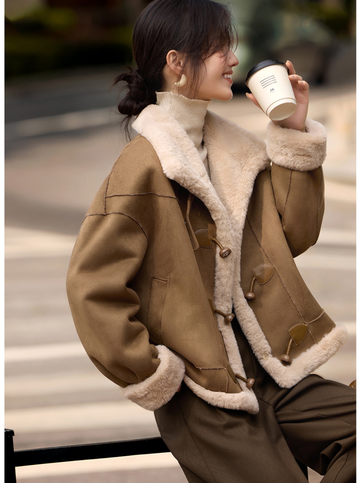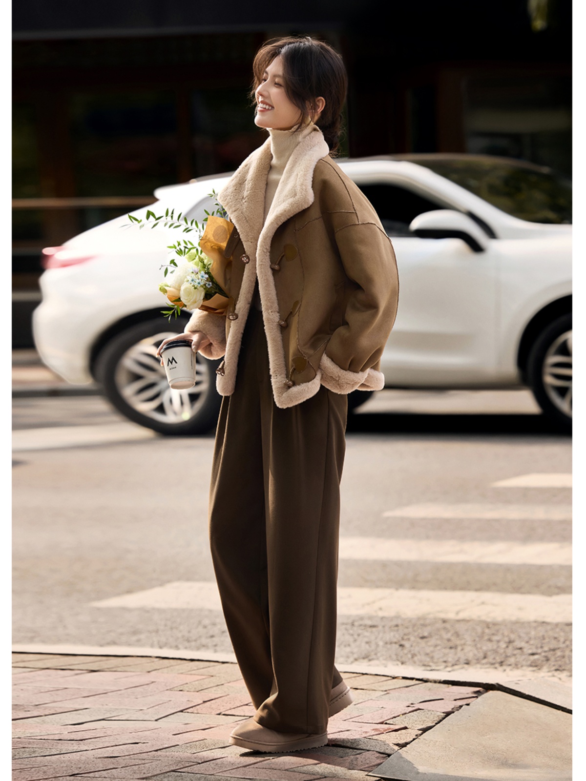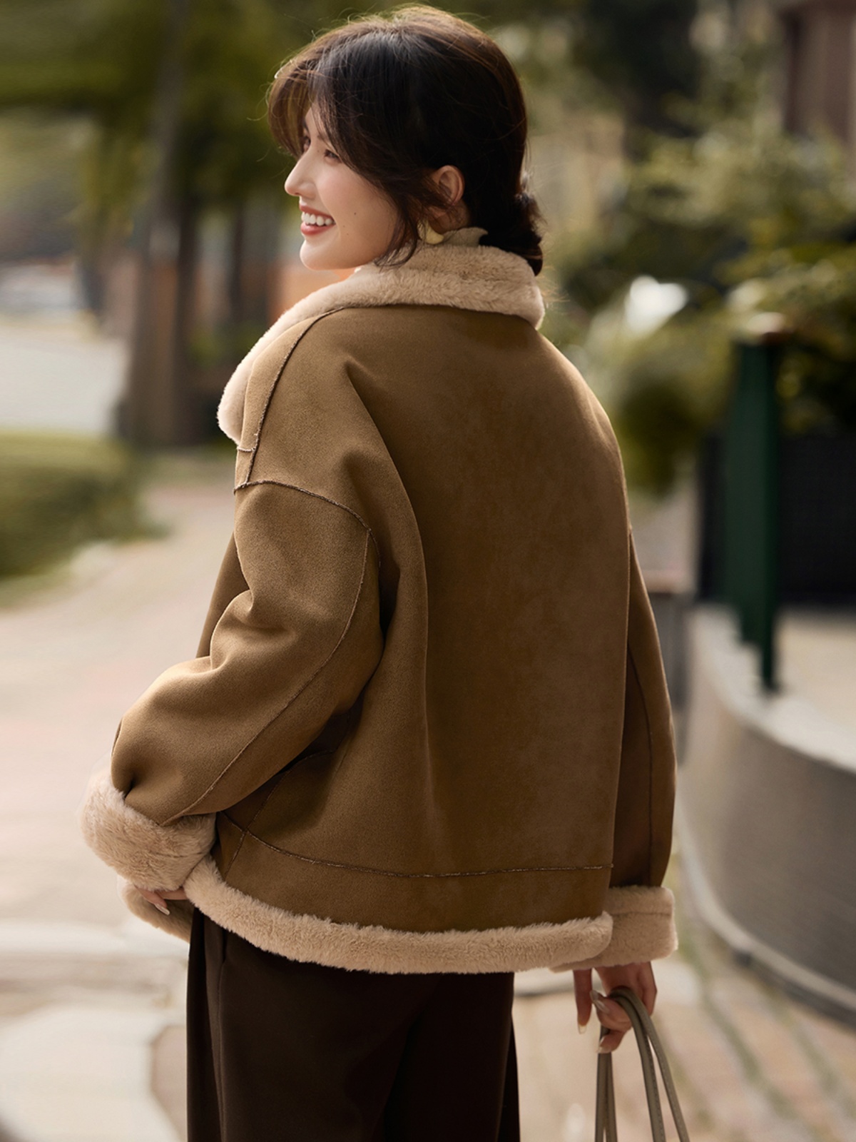 FA51479# 美拉德皮毛一体外套女冬季仿羊羔绒加厚上衣冬季新款 服裝批發女裝批發服飾貨源