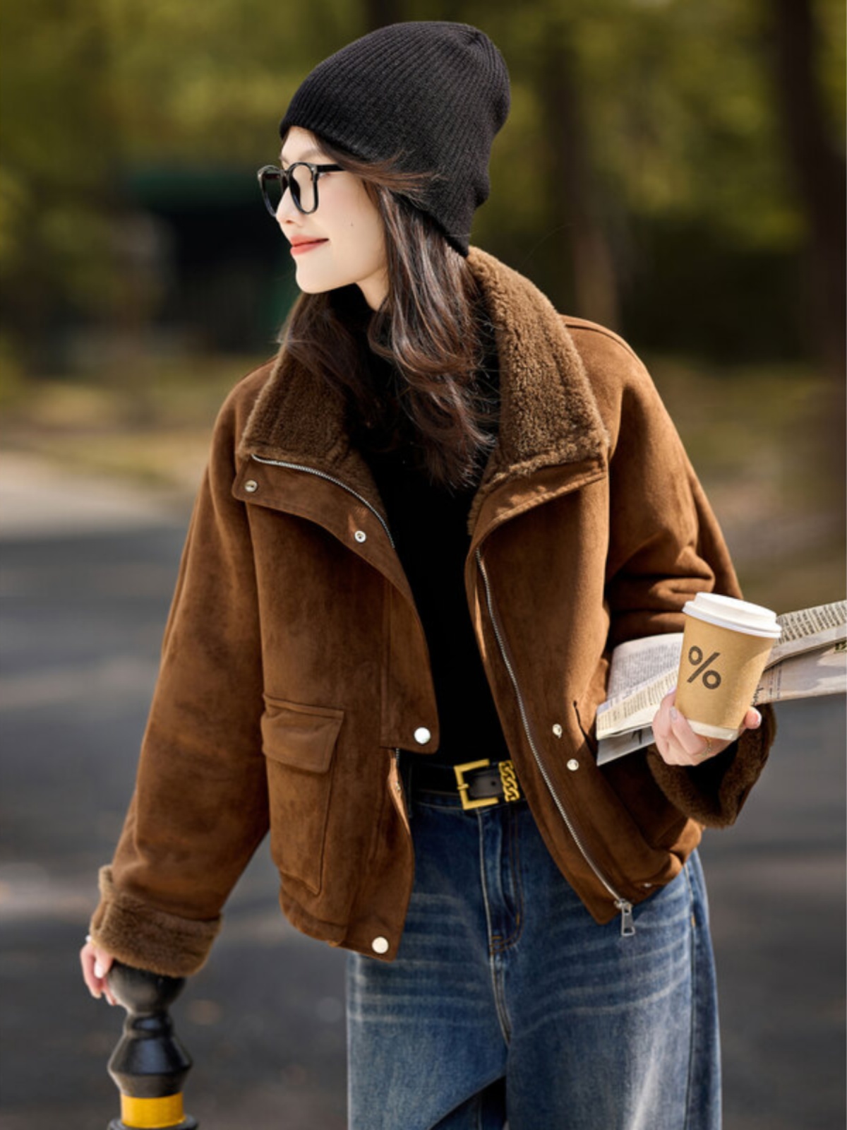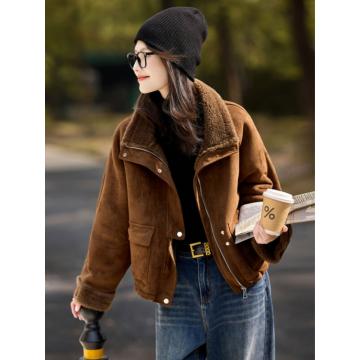 FA51485# 时尚仿皮草外套冬季新款高级百搭翻领加厚短款通勤皮草上衣 服裝批發女裝批發服飾貨源