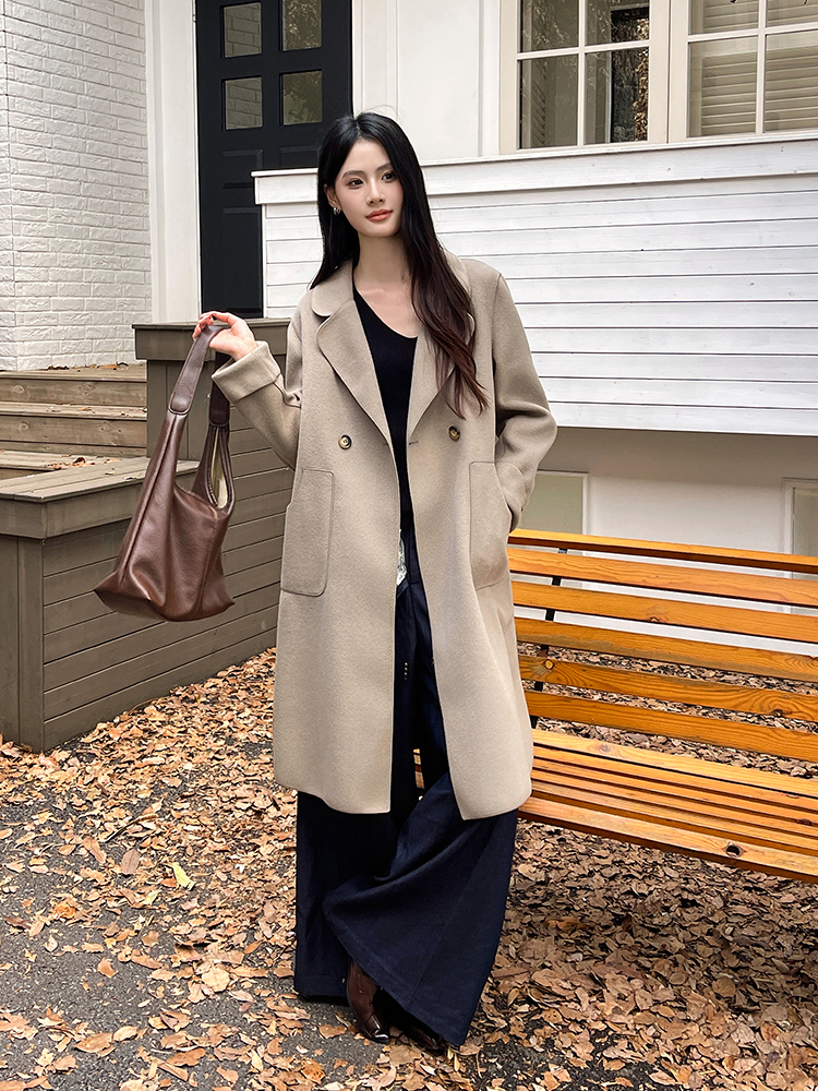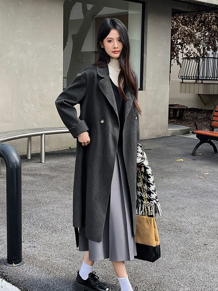 FA51494# 韩系网红秋冬浴袍长款双面呢绒大/外套毛呢大衣/外套经典款毛呢 服裝批發女裝批發服飾貨源