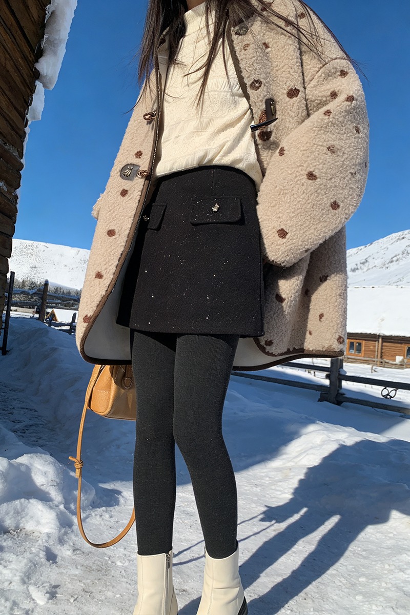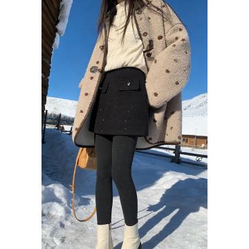 灰色品质细闪亮钻点缀毛呢半身裙秋冬高腰A字包臀呢子短裙 服裝批發女裝批發服飾貨源
