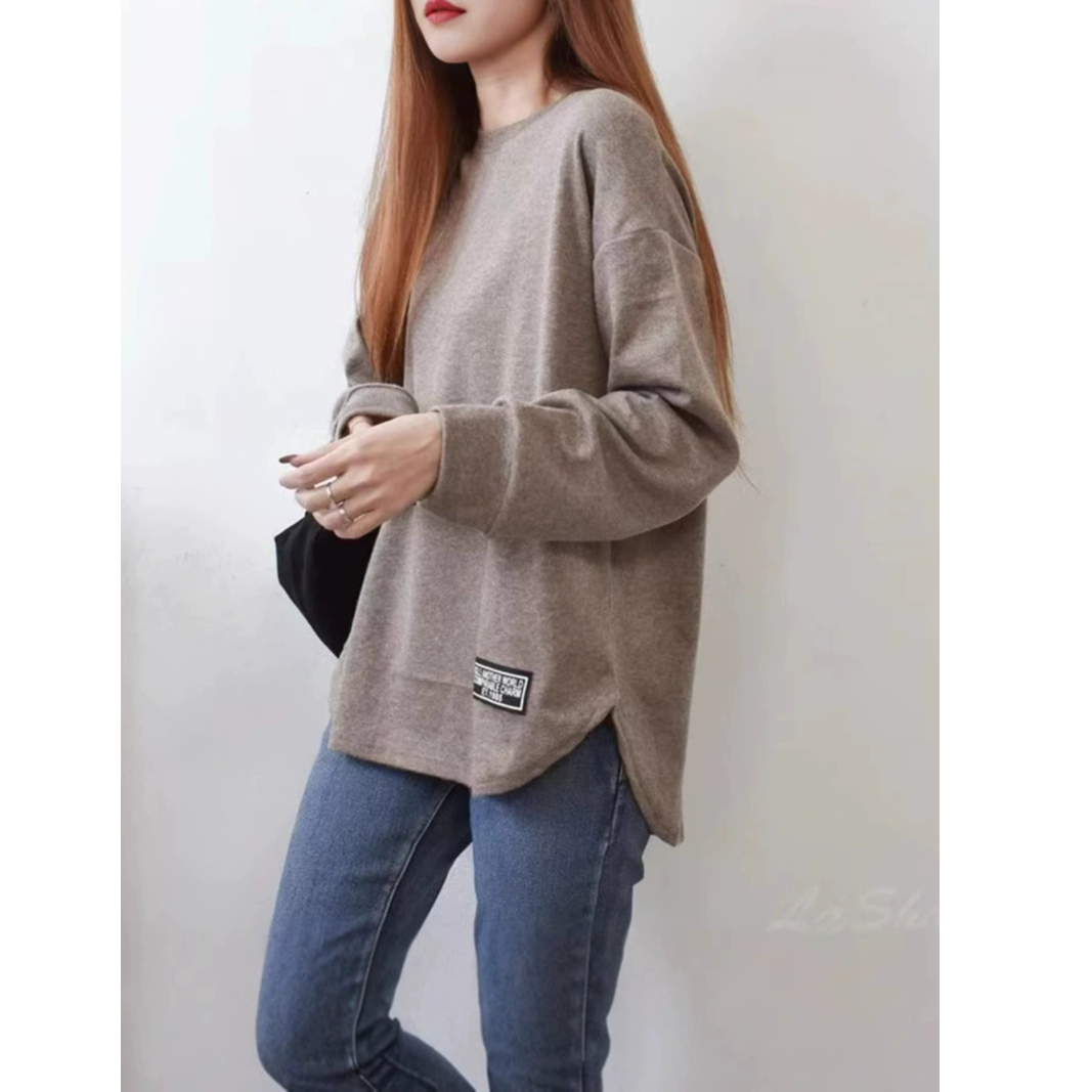 日韩新款大码女装宽松休闲显瘦贴标磨毛不规则女卫衣ins批发 服裝批發女裝批發服飾貨源