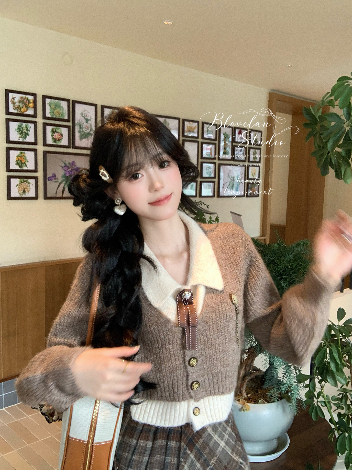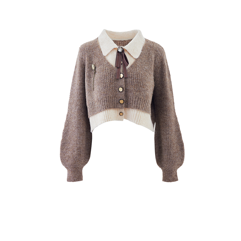 复古胶片秋冬美拉德学院减龄Polo领假两件毛衣针织上衣 服裝批發女裝批發服飾貨源