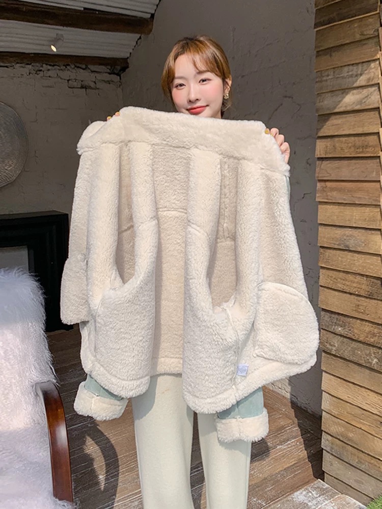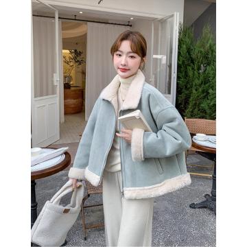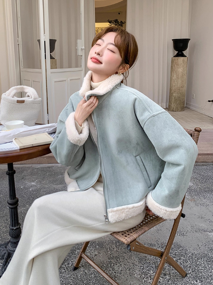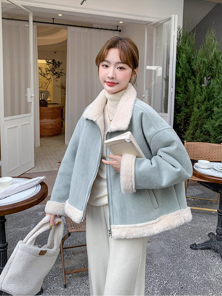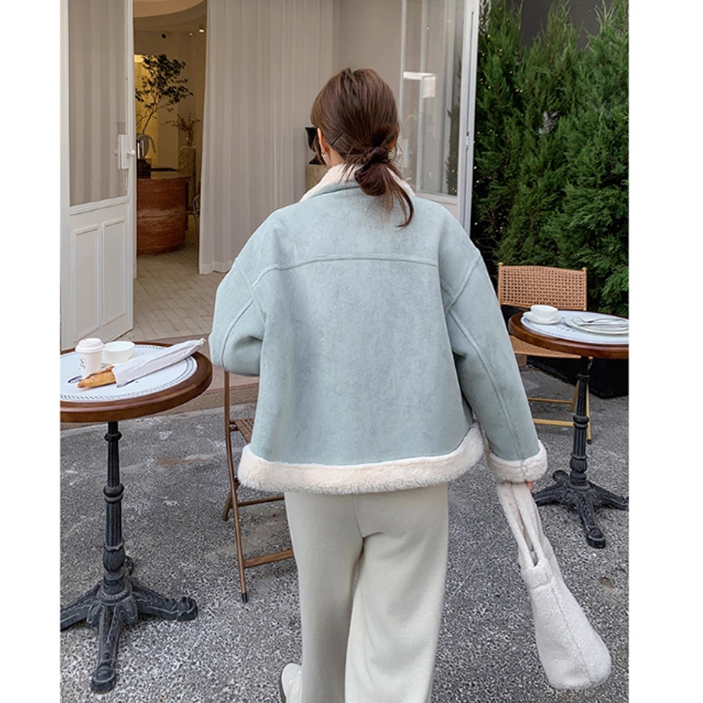 麂皮绒皮毛一体羊羔毛短外套女小个子高级感毛绒翻领加厚保暖上衣 服裝批發女裝批發服飾貨源