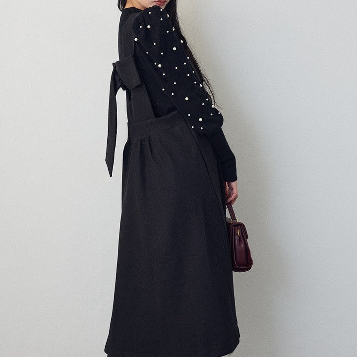 FA52426# 两穿蝴蝶结女毛呢背心长裙 服裝批發女裝批發服飾貨源