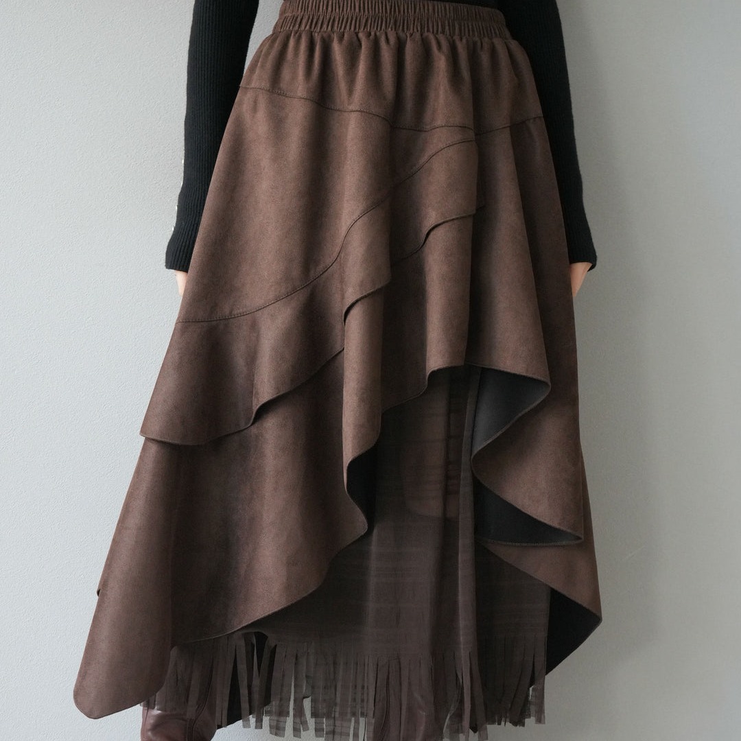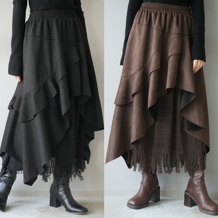 FA52432# 秋冬女高档半身裙新款时尚高腰不规则流苏中长裙女半身长裙 服裝批發女裝批發服飾貨源