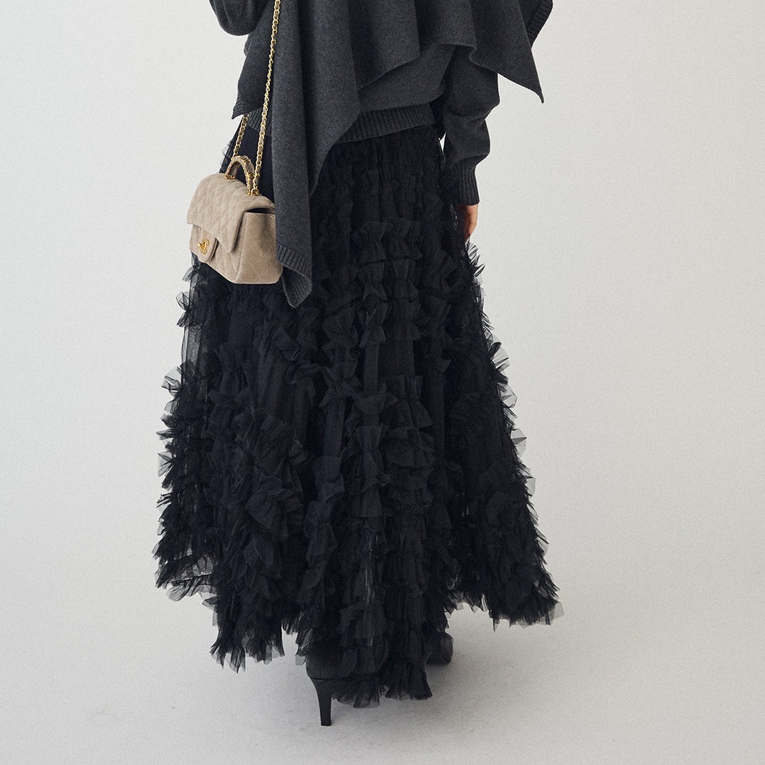 FA52436# 新款重工大摆木耳花边A字长裙女百搭蓬蓬长裙蛋糕裙 服裝批發女裝批發服飾貨源