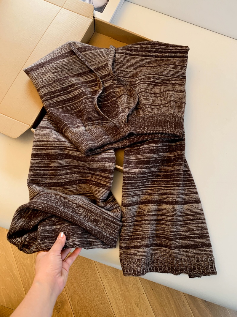 Home > 牛仔裤、长裤 > 系带松紧高腰垂感直筒针织阔腿裤女秋冬宽松外穿洋气软糯拖