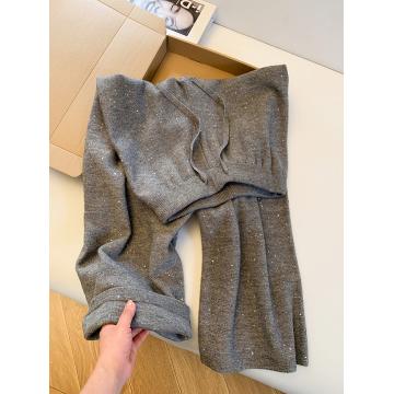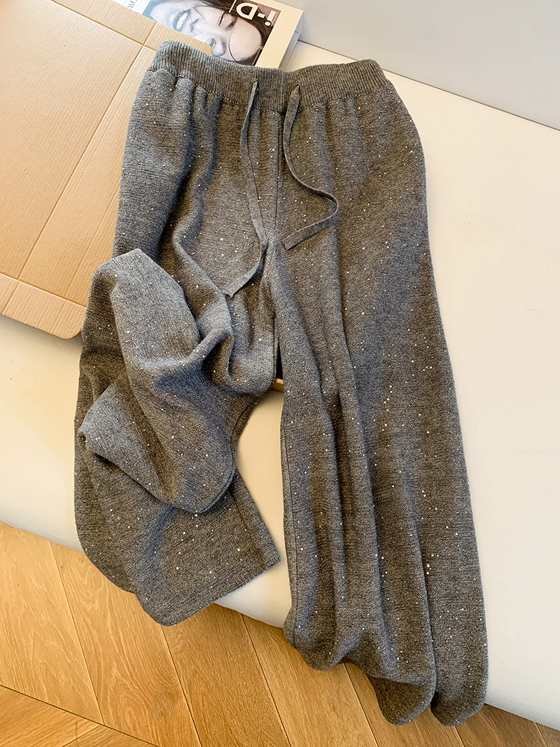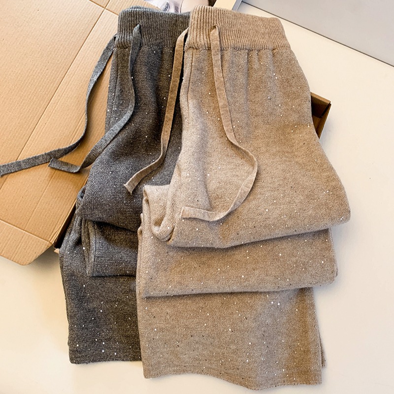系带松紧高腰垂感直筒针织阔腿裤女秋冬宽松外穿洋气软糯拖