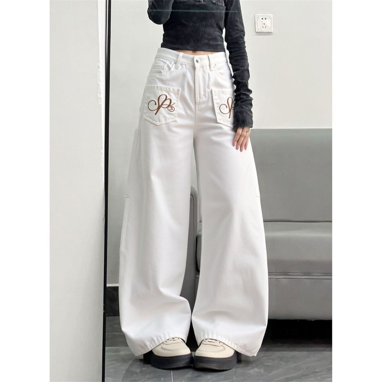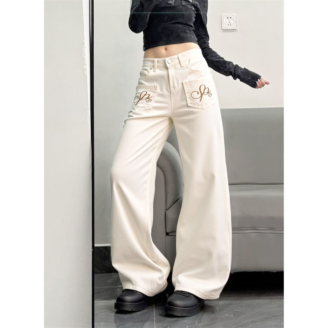 FA52733# 阔腿牛仔裤重工设计反口袋复古个性直筒拖地长裤子 服裝批發女裝批發服飾貨源